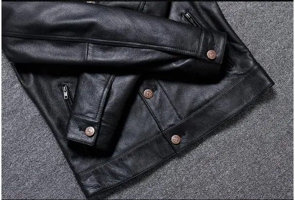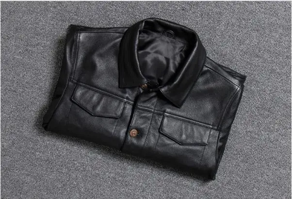 Доставка. Распродажа, мужская одежда в свободном стиле, повседневная куртка из воловьей кожи, черное пальто из натуральной кожи