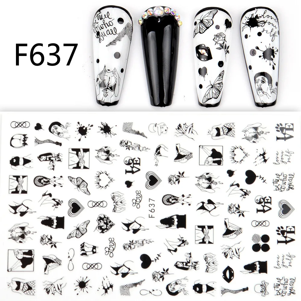 Стикер для дизайна ногтей Morixi, черно-белый цвет, цветок, листья, геометрическая фигура, печать 3D, маникюр, самоклеющиеся наклейки для ногтей FW070