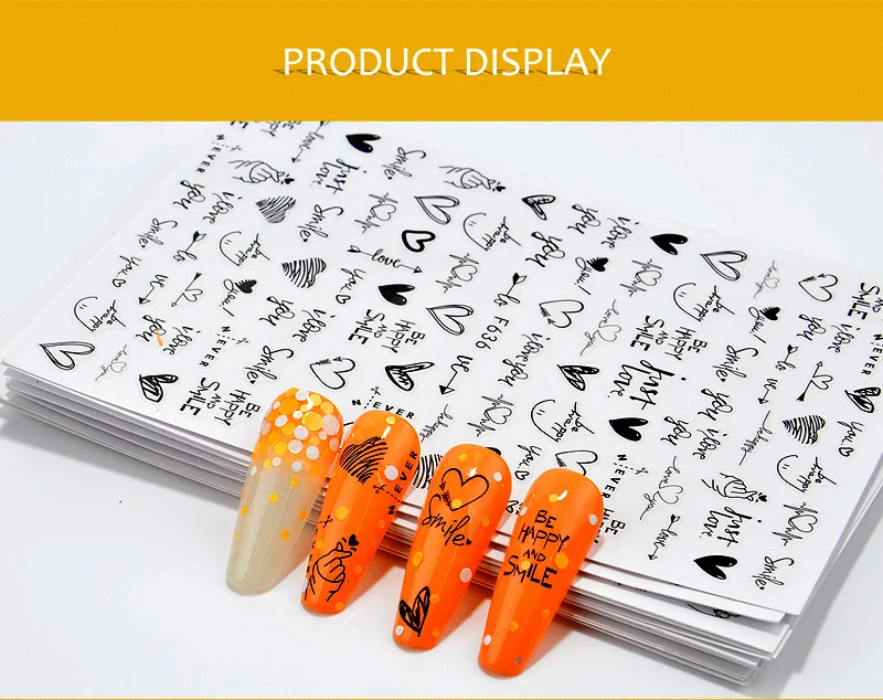 1 шт в форме сердца, с рисунком в виде букв 3D ногтей Стикеры абстр...