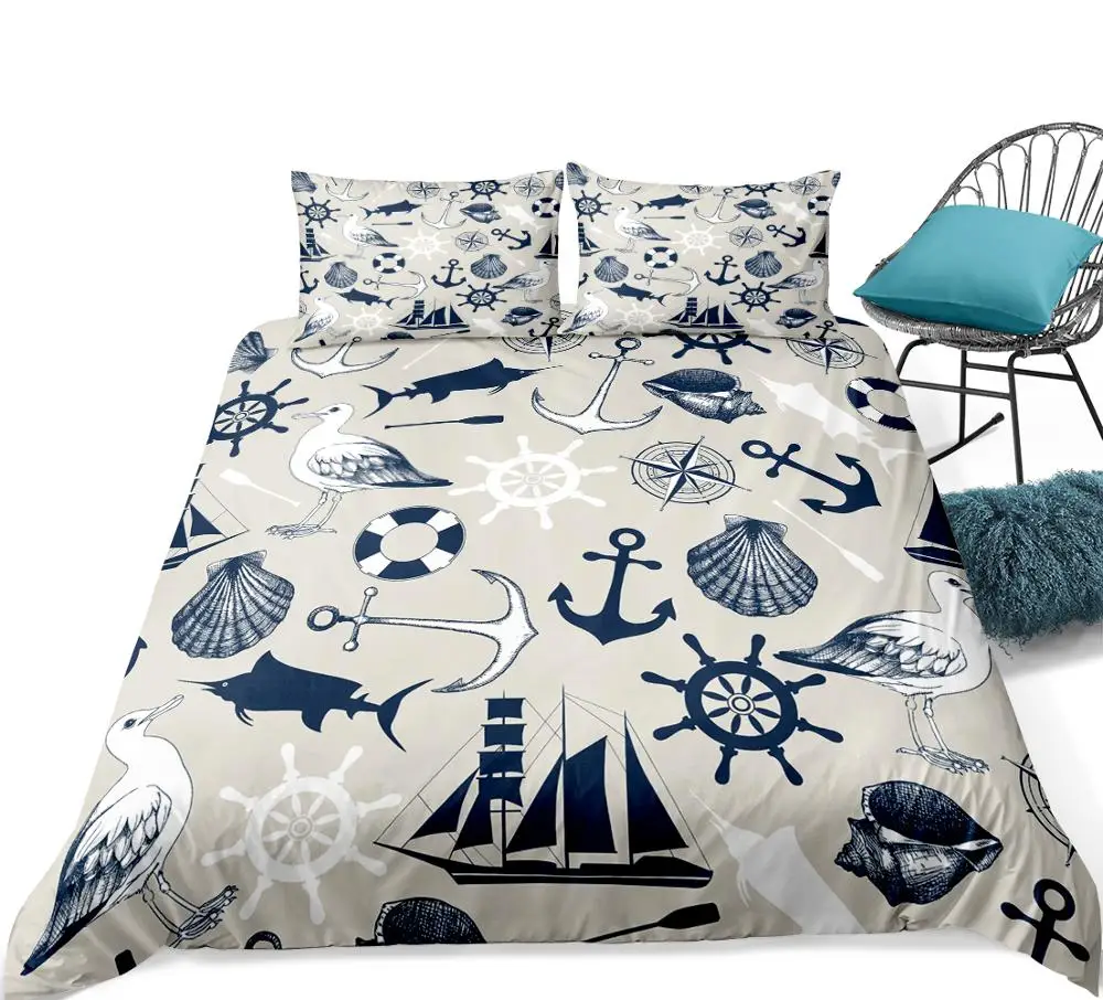 Комплект пододеяльников с 3d-компасом, морской элемент, оболочка, пододеяльник, парусная лодка, искусственная рыба, винтажные покрывала из микрофибры
