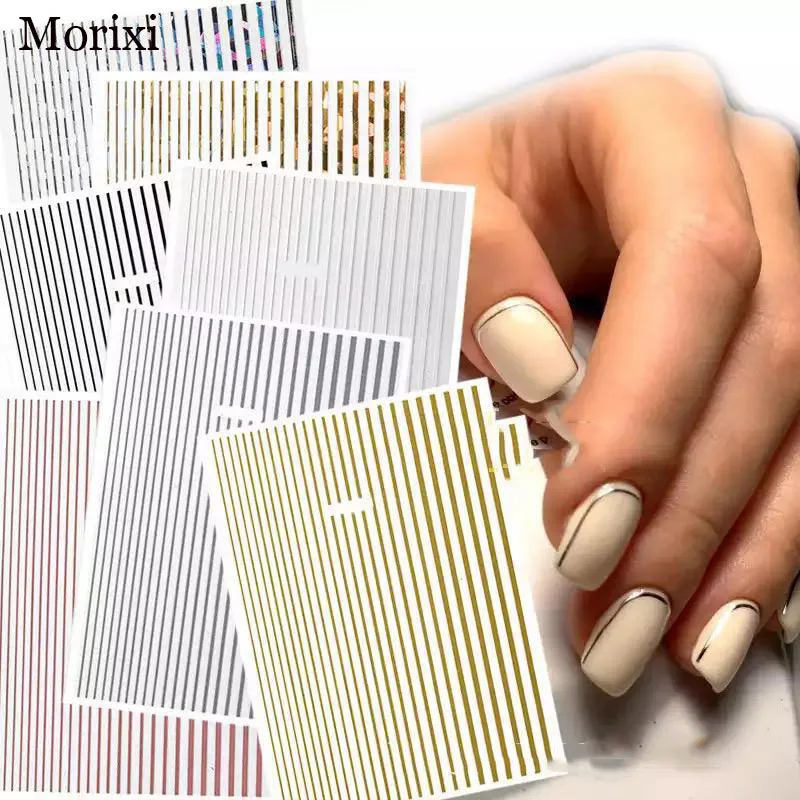 Позолоченные наклейки для дизайна ногтей Morixi, геометрические сердца, растения, листья, золото и серебро, украшения для маникюра, арт полоски для ногтей WG045
