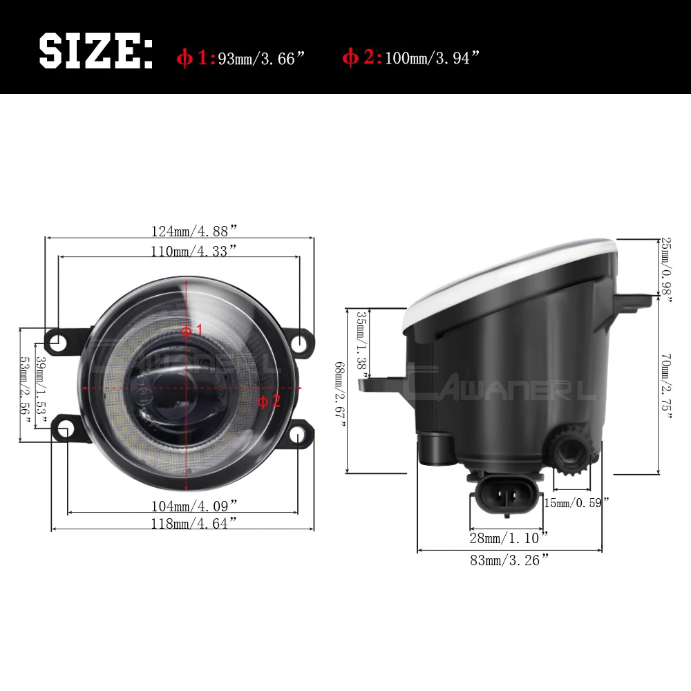 -Мощность: противотуманная Light-30W/пара 15 Вт/лампа; Ангел Eye-10W/пара 5 Вт/лампа;
