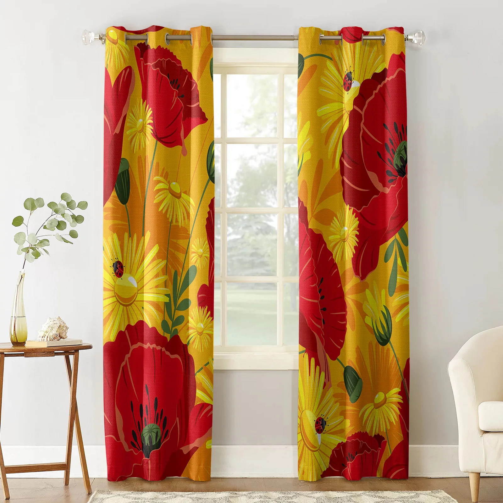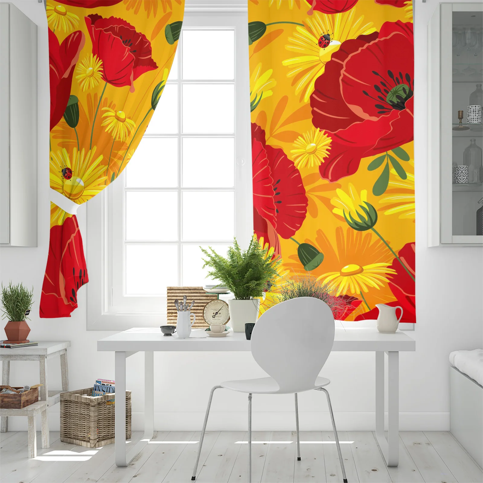 Роскошные занавески s красный цветок Мак маргаритки затемняющие занавески для спальни домашний Декор Гостиная Кухня затемняющие занавески