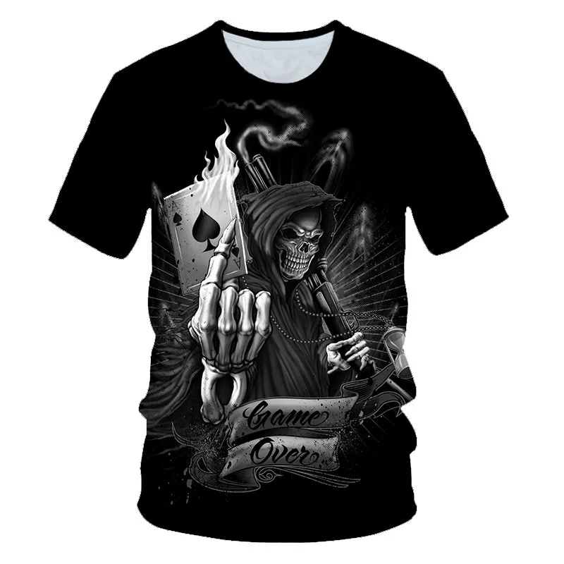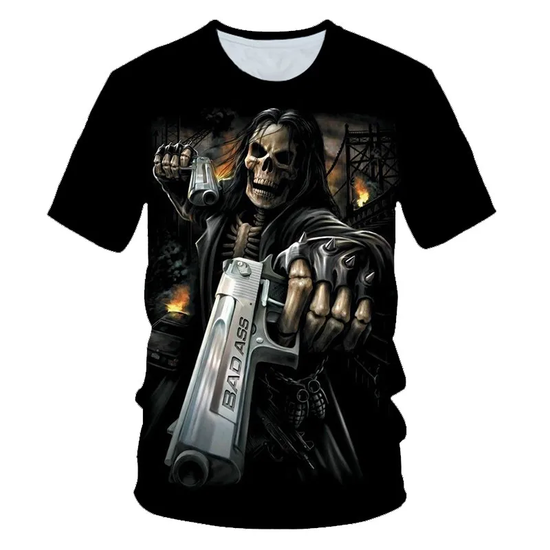Футболка мужская с 3D-принтом скелета, крутая тенниска в стиле рок,...