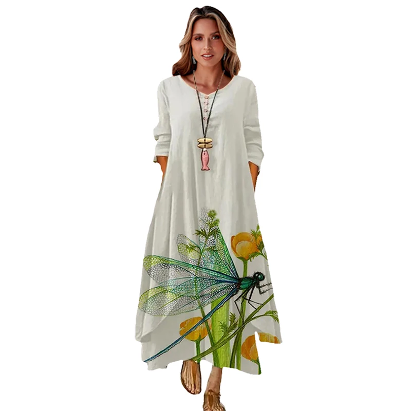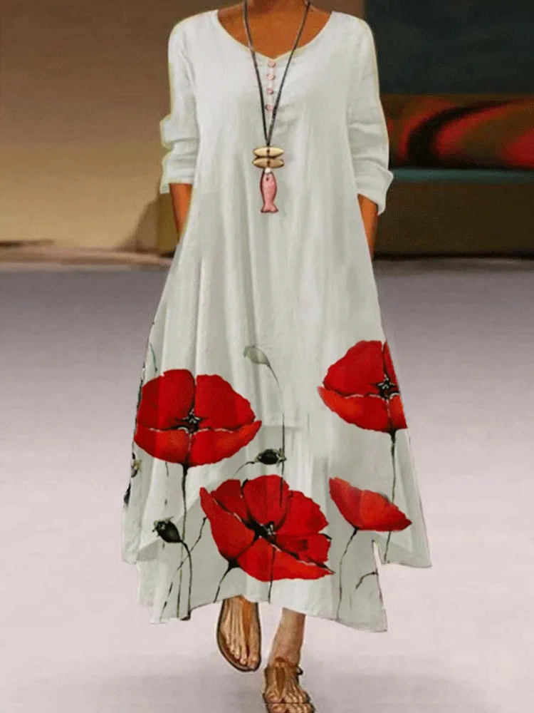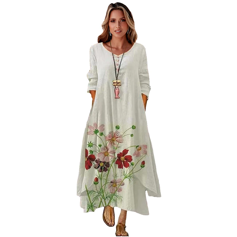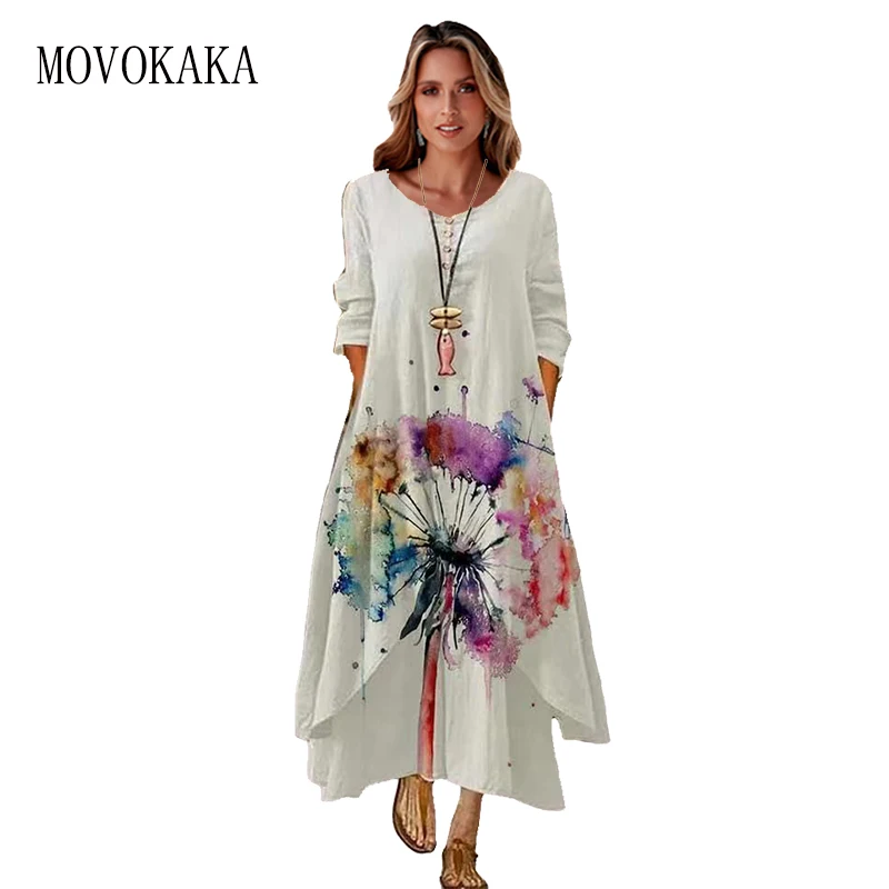 MOVOKAKA 2022 белое длинное женское платье с цветочным принтом винтажное элегантное платье с длинным рукавом праздничные платья женские Повседневные Вечерние