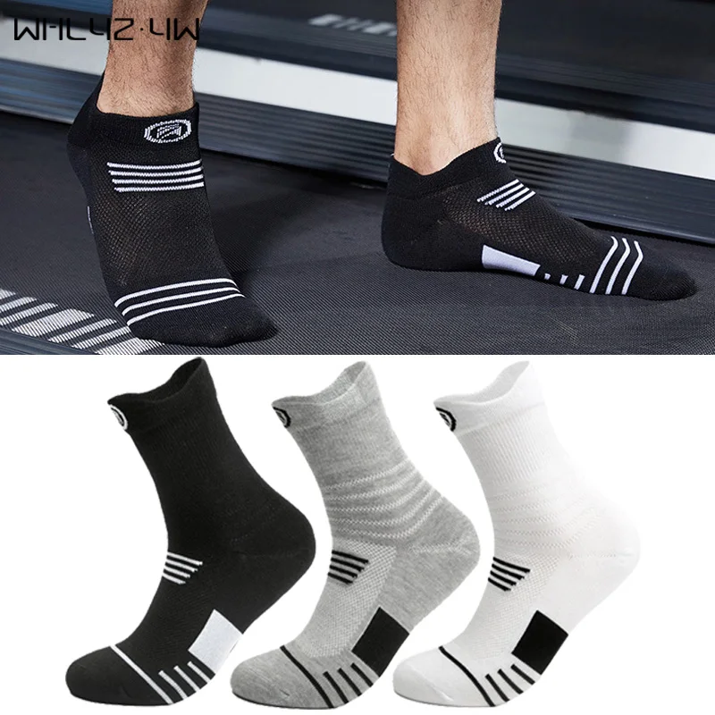 Весенне-летние спортивные носки для мужчин, однотонные полосатые сетчатые Дышащие носки для путешествий, баскетбола, велосипеда, бега, футбола