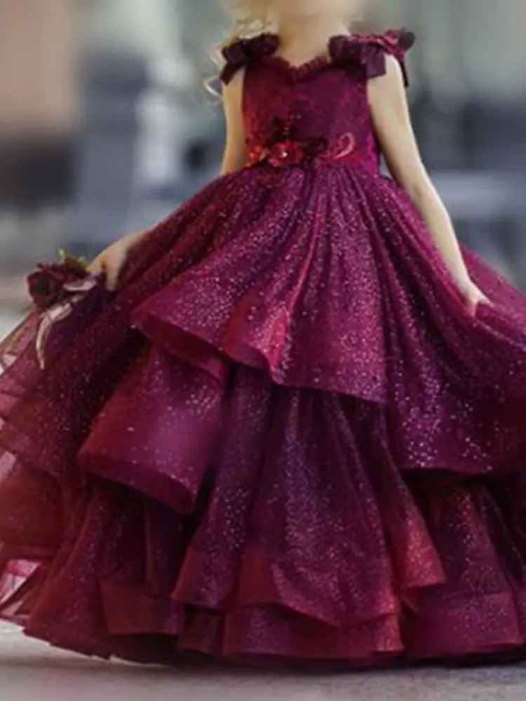 Бальное платье, Цветочное платье для девочек, кружевные аппликации,...