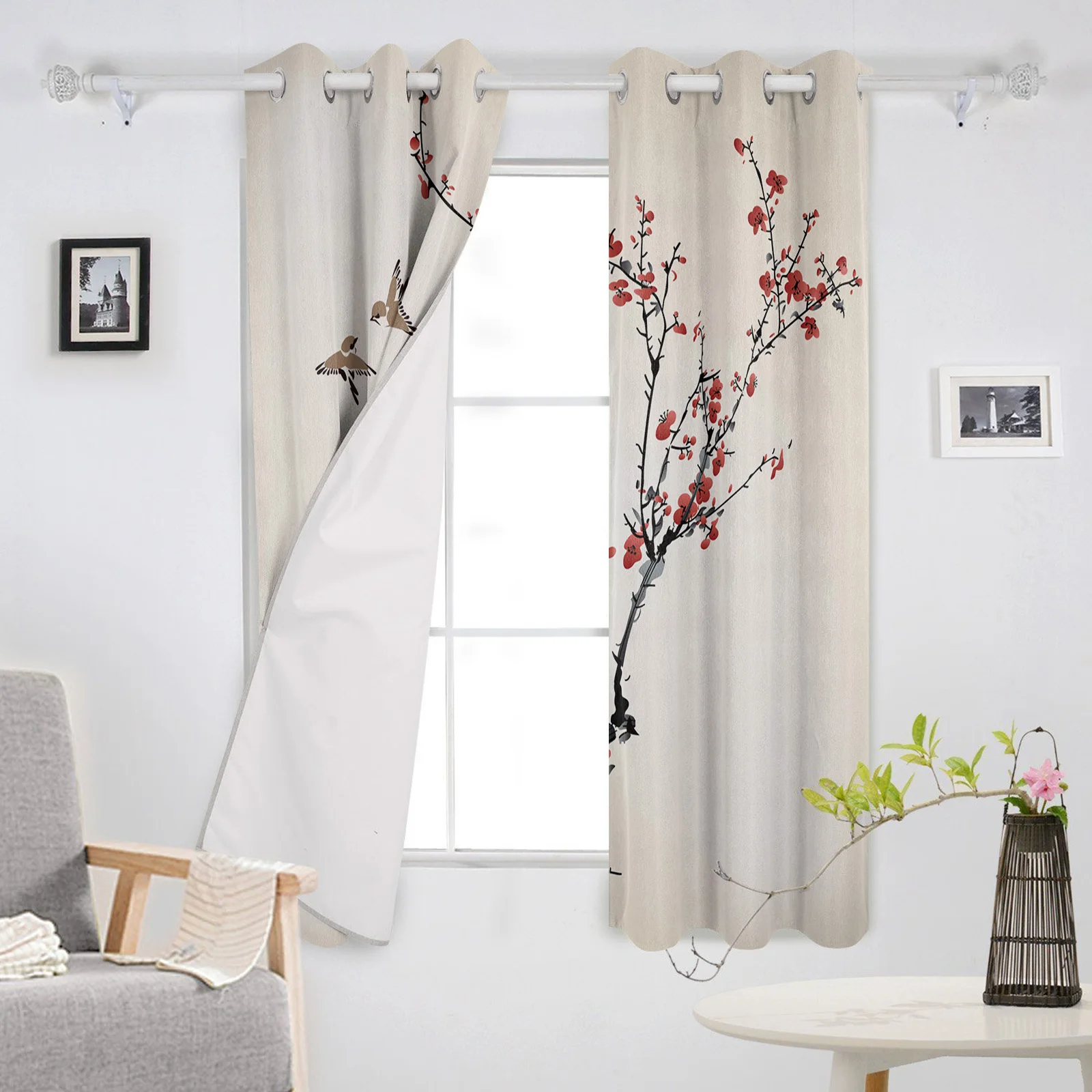 Шторы для спальни, гостиной, кухни, с цветущими листьями сливы