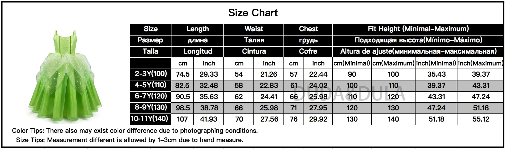 Костюм принцессы с крыльями фея Динь-Динь, зеленый, для Хэллоуина