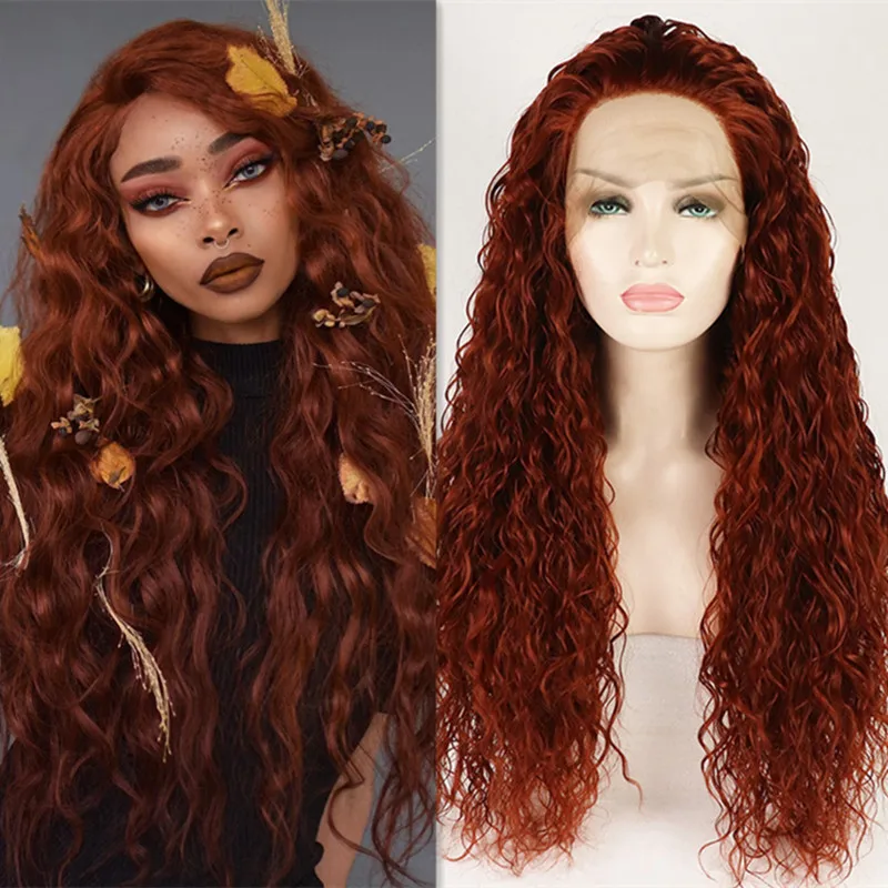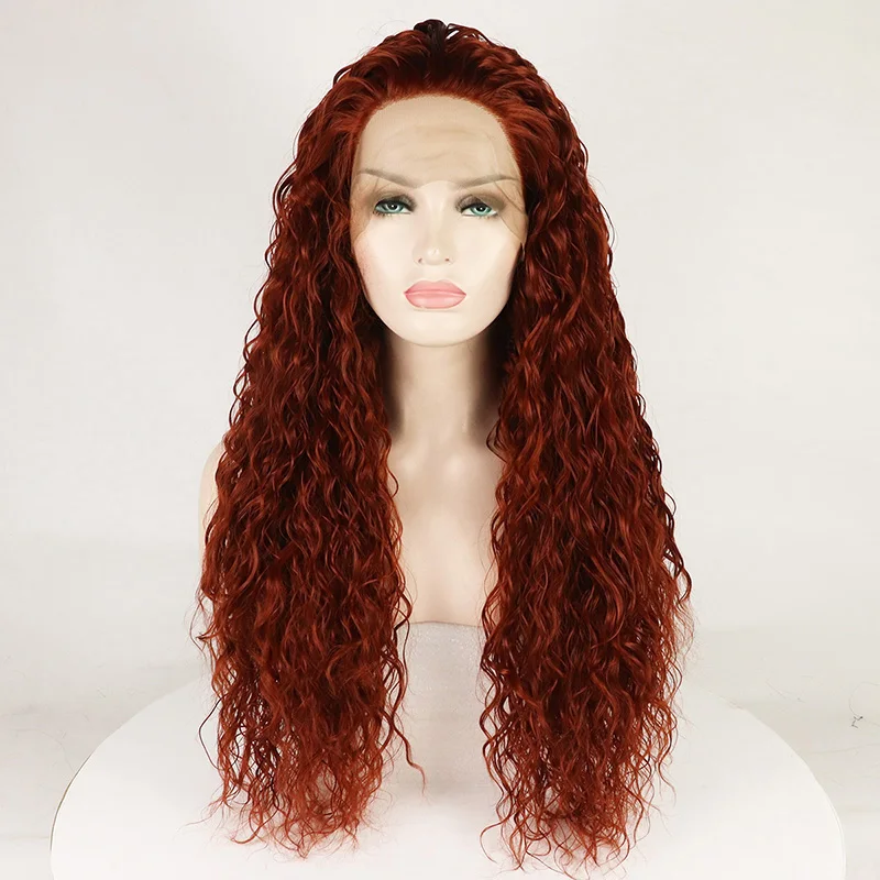 Длинный кудрявый темно-красный парик на сетке спереди синтетические волосы для женщин термостойкий косплей ежедневный парик с естественной линией волос