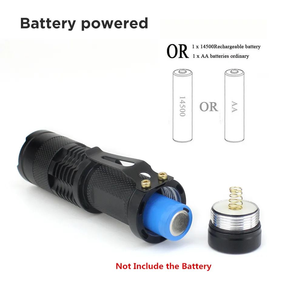Супер Мини размер, яркий, ослепляющий эффект.Противоскользящий дизайн и водонепроницаемый дизайн.Выход яркий может достигать 3000 люменов (макс.).Регулируемый диапазон фокусировки для различного использования, растягивается для регулировки фокуса.Зажим для удобной переноски.Рабочее напряжение широкое и может использовать батареи в самой большой степени.Подходит для охоты, велоспорта, альпинизма, кемпинга и активного отдыха и т. д.Характеристики:Цвет: черныйЛюмен: 3 лмОтражатель: выпуклая линзаМатериал: алюминиевый сплавМодель светодиодный: Q5 светодиодныйПереключатель: Нажмите кнопку ВКЛ/ВЫКЛБатарея: 1 * зарядное устройство для никель-кадмиевых или никель-металл-1*14500 3,6 v Батарея (батарея не входит в комплект)