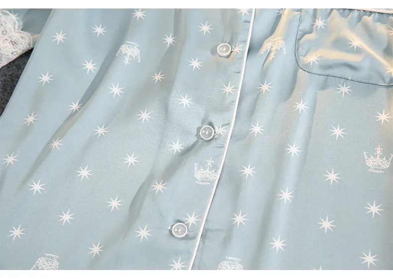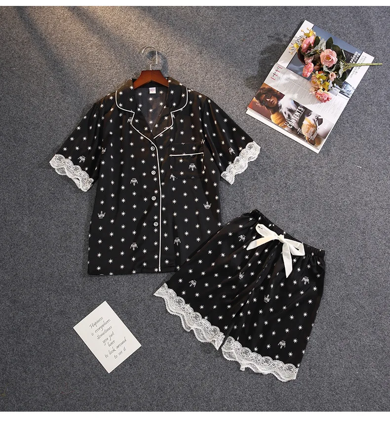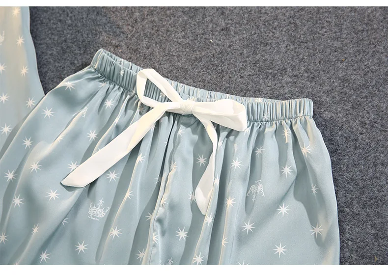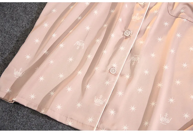 Комплект женский атласный из рубашки и брюк, пижамный комплект из 2 предметов с принтом, пикантная одежда для сна, новинка 2021, домашняя одежда с коротким рукавом и короной, звездное ночное белье
