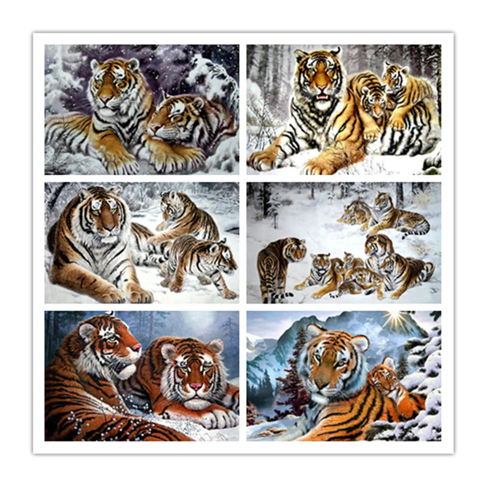 Алмазная живопись, полная выкладка, Круглый Снег, тигр, животные, мульти-комбинация, вышивка ручной работы, украшение для дома, мозаика, творческое искусство