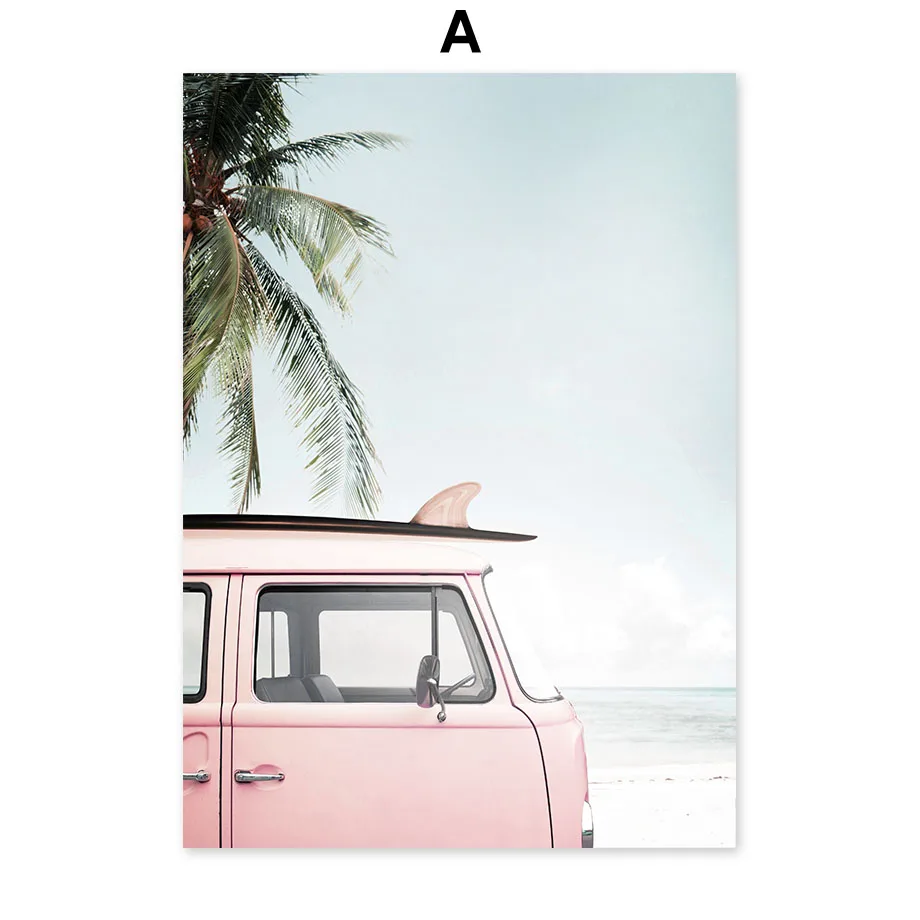 Настенная картина с изображением розового фламинго, зеленой пальмы, моря, пляжа, скандинавские плакаты и принты для гостиной, декоративные настенные картины
