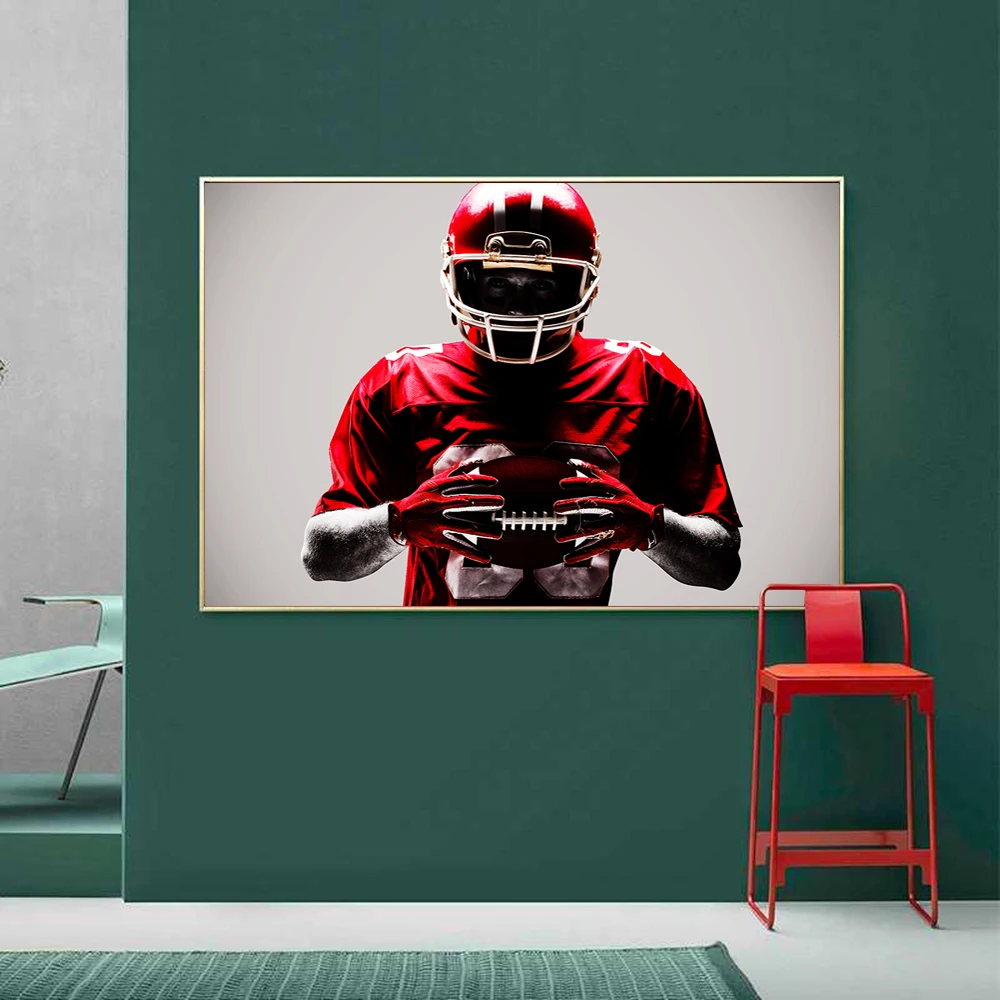 Современная портретная художественная настенная живопись, печать на холсте, плакаты и принты, Красная футболка и шляпа для регби, картина для декора гостиной