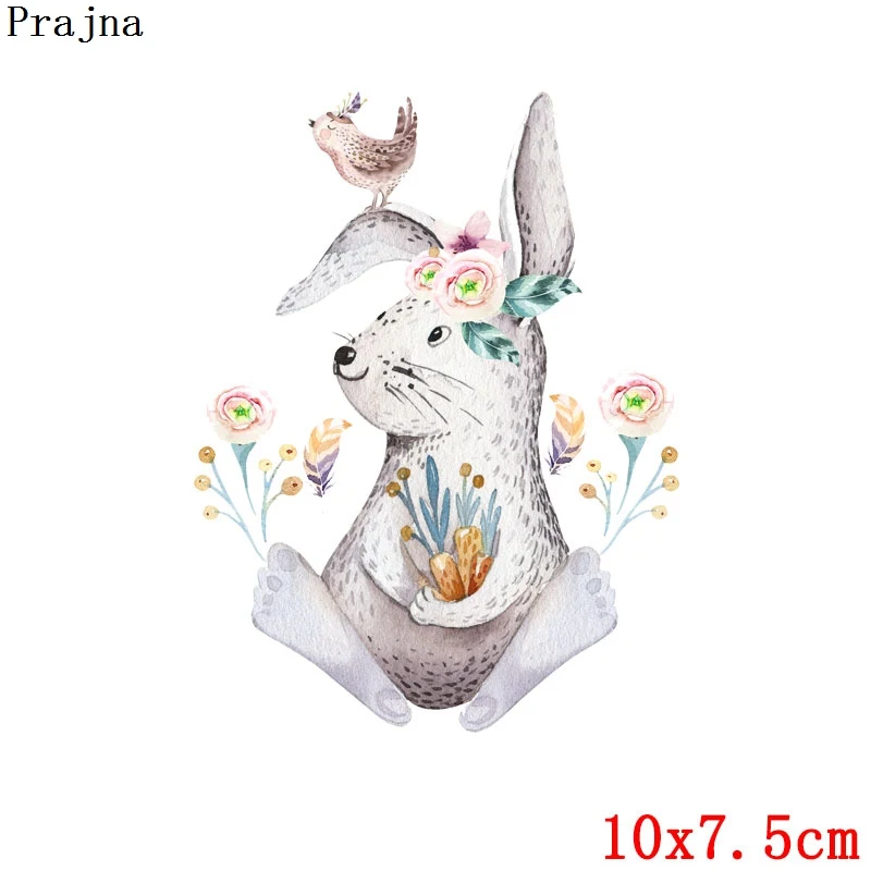 Prajna джунгли животные мультфильм Железный На переноске Vynil теплопередача термо патчи для одежды лиса Олень Медведь гладильная наклейка