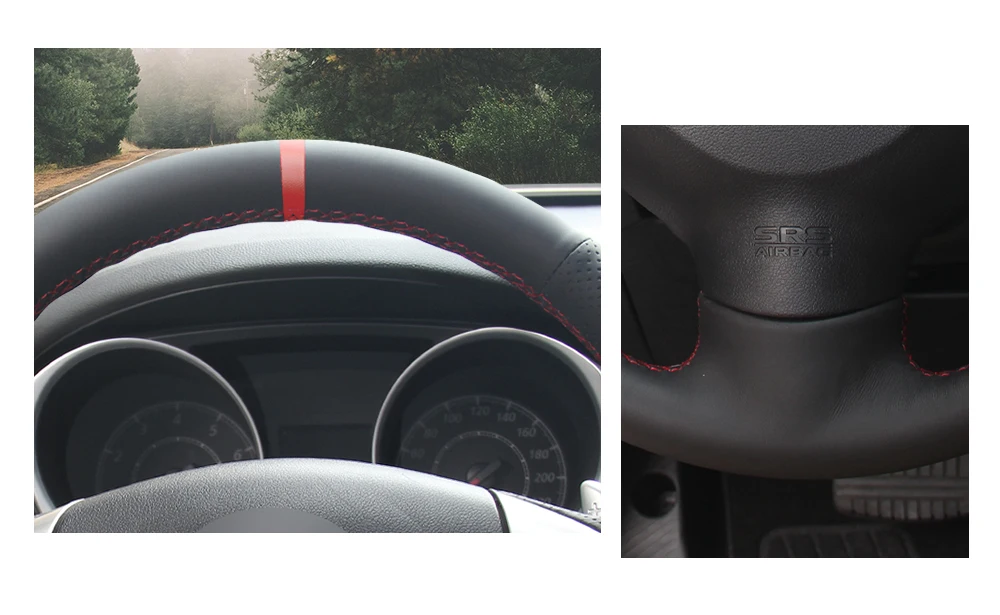Черная искусственная кожа Красный Маркер DIY чехол рулевого колеса ...