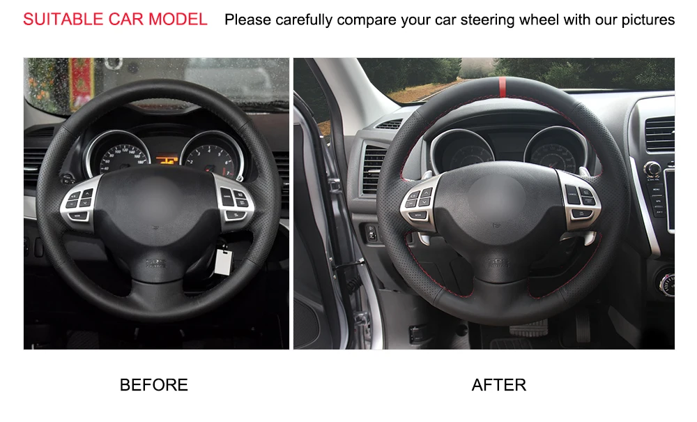 Чехлы на руль черные из искусственной кожи для Mitsubishi Lancer X 10 Pajero Sport Outlander ASX Colt, Citroen C-Crosser