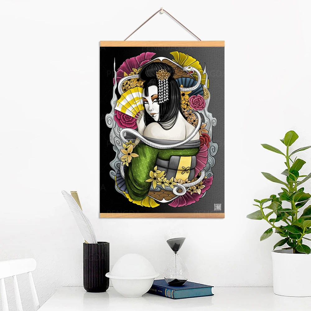 Холст украшение для дома японский плакат печать Картина Настенная богиня Искусство деревянный свиток бензаит подвесная картина прикроватный фон