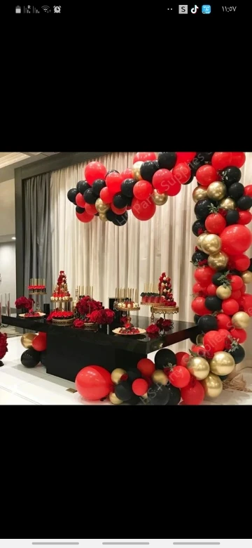 Набор из шаров и венков, латексных, белых, черных, красных, золотых...