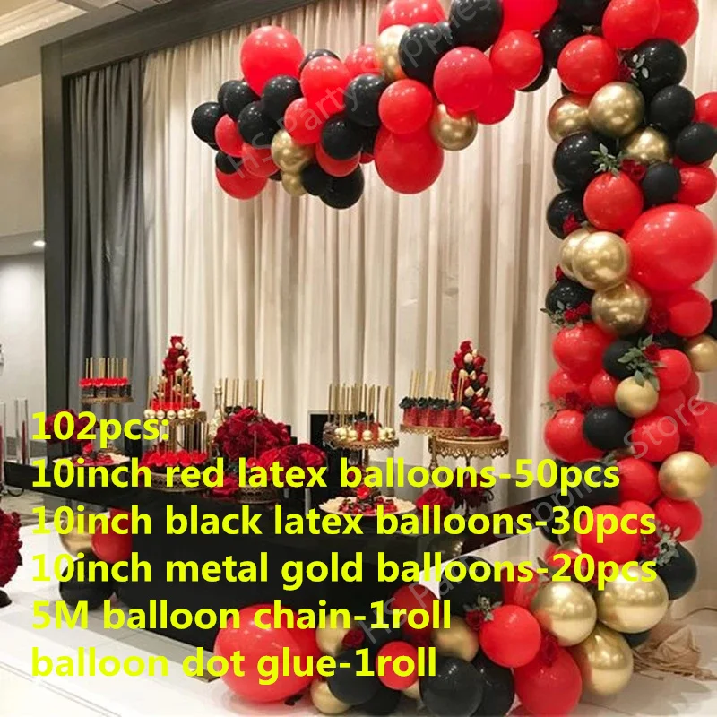 102 шт. латексные воздушные шары цвета металлик, золотистого, красного, черного цвета, 10 дюймов