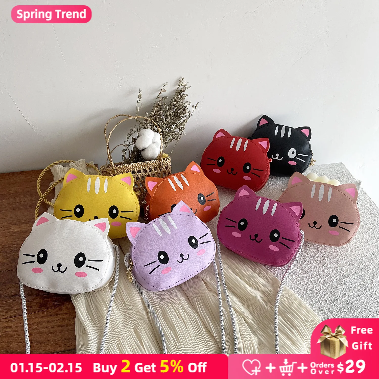 Модные детские мини-сумочки принцессы маленькие сумки через плечо из искусственной кожи для маленьких девочек кошелек для мелочи с милым котом