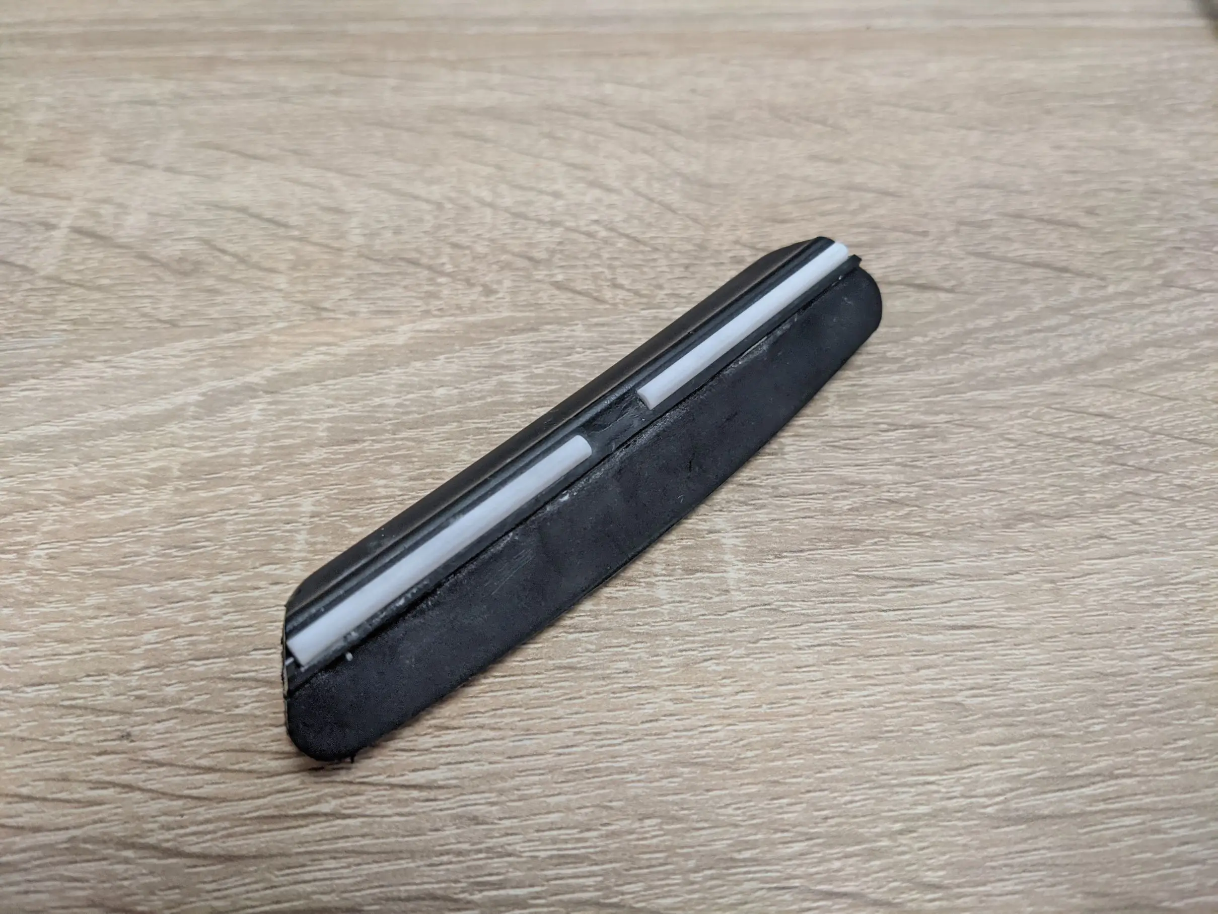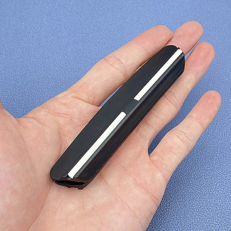 Думаю, что эти белые Брусья-ролики, которые вращаются. На самом деле они закреплены и изготовлены из керамики (поэтому они не могут быть легко разрушены белым камнем). Руководство довольно большое, поэтому его можно использовать только на больших ножах. На небольших ножах весь нож скрывается внутри направляющей, и Вам нечем затачивать.