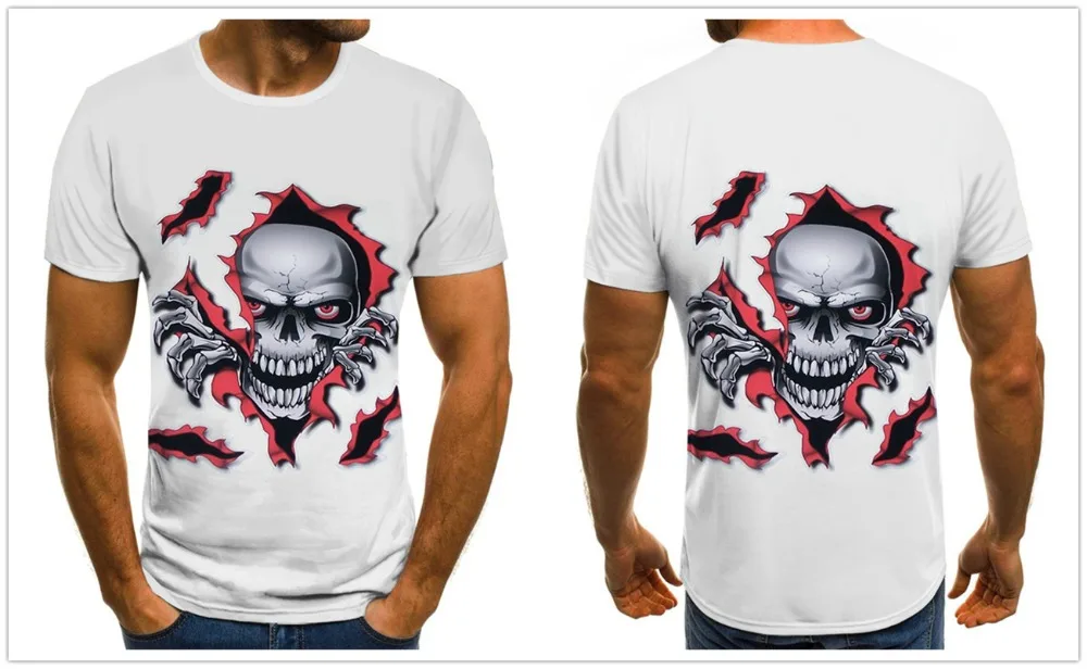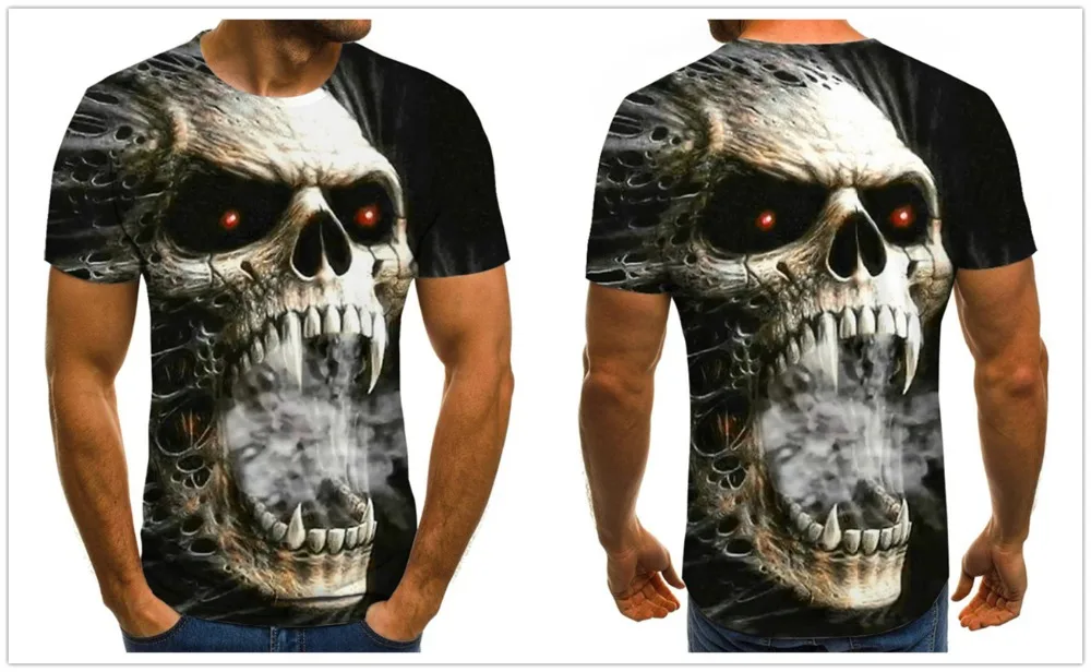 Футболка мужская ужасная с 3D-принтом черепа, модная тенниска с при...