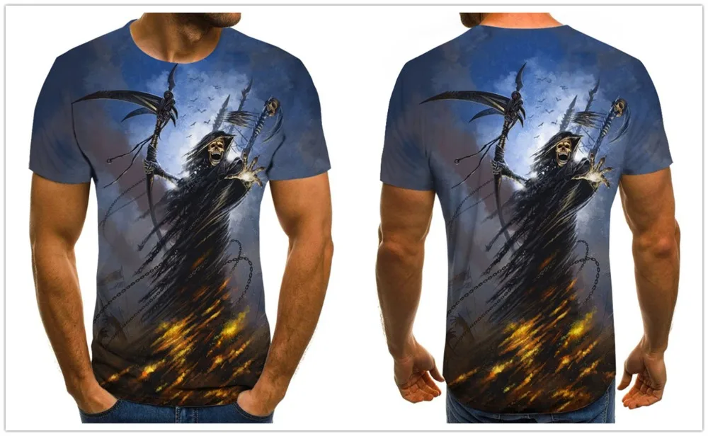 Мужская футболка с 3D-принтом черепа Жнеца, футболки с ужасным прин...