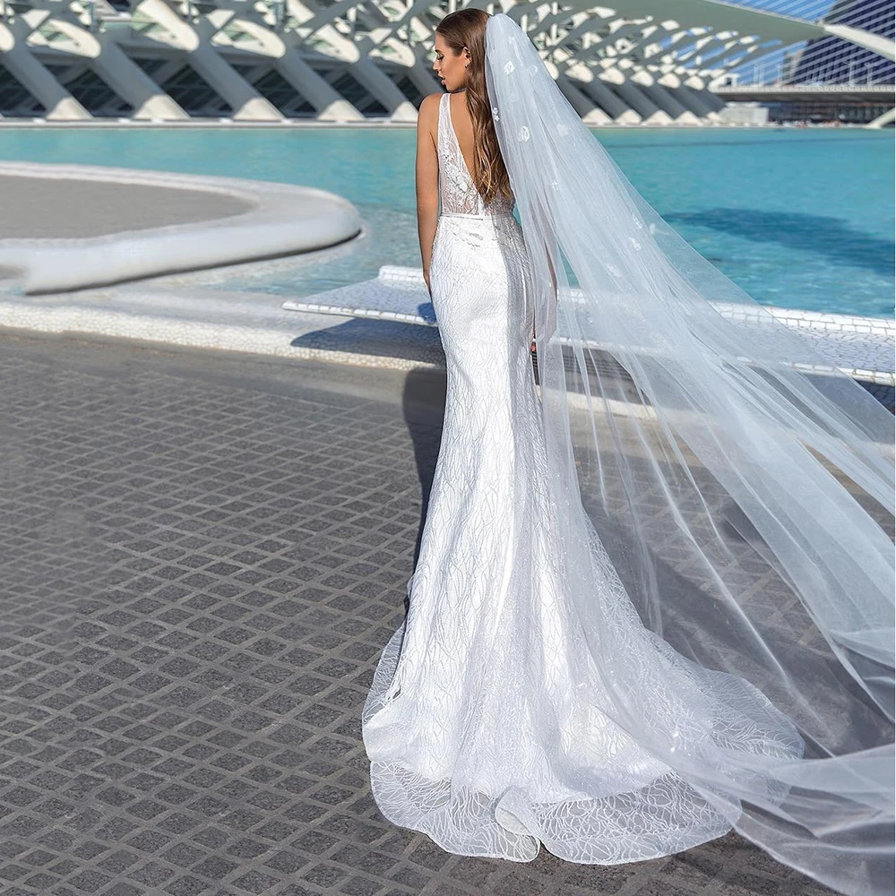 UZN элегантное сексуальное свадебное платье Сексуальное нижнее белье с глубоким v-образным вырезом Русалка, кружева, Свадебная платья с открытой спиной для невесты, платье с поясом для девочек