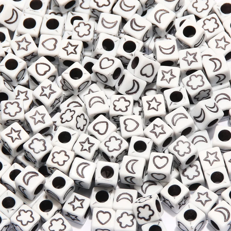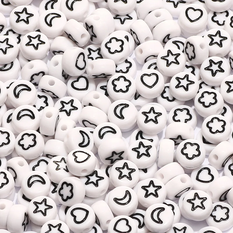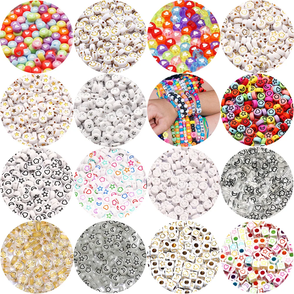 Круглые плоские акриловые бусины-разделители, квадратные смешанные звезды, любовь, сердце, бусины для изготовления ювелирных изделий сделай сам, браслет, ожерелье ручной работы