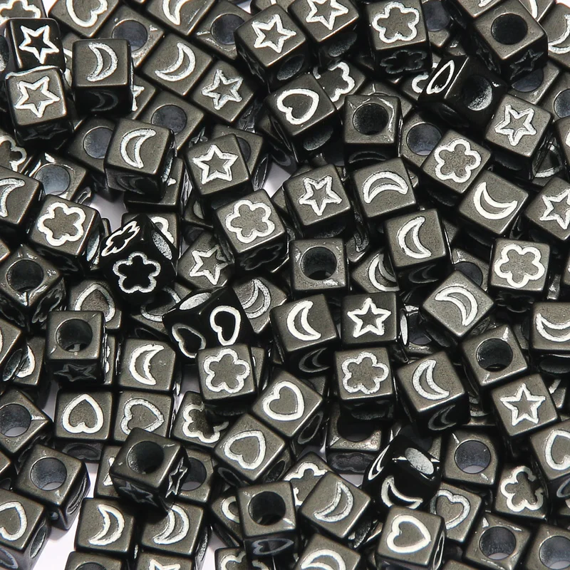 Акриловые бусины 6*6 мм, Смешанные черные звезды, луна, цветок, сер...