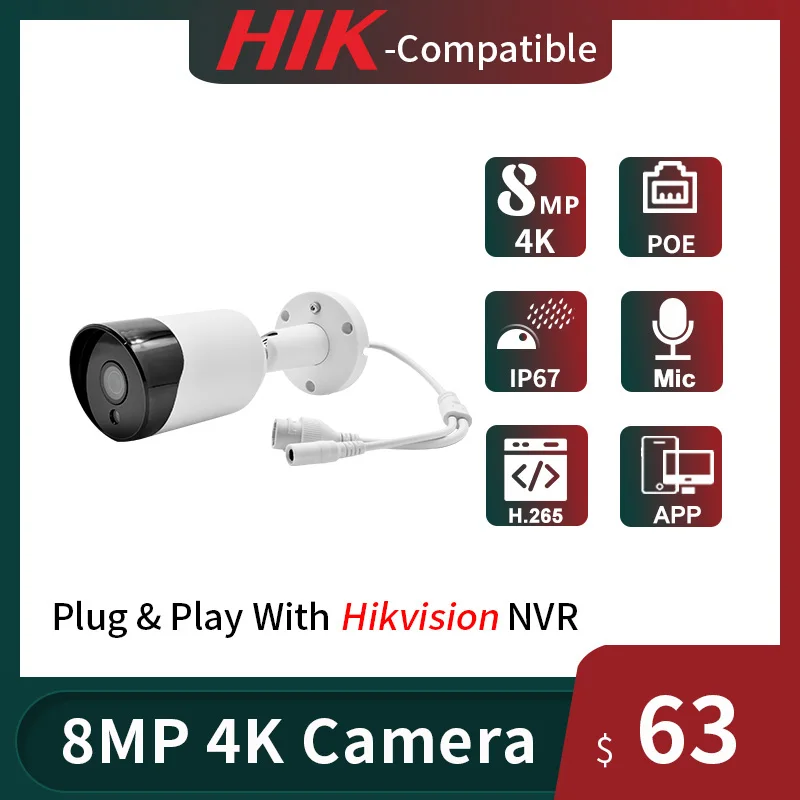Hikvision совместимая с 8MP 4K цилиндрическая IP-камера POE IR30m цилиндрическая домашняя камера видеонаблюдения Ultra H.265 Plug play Security IPC