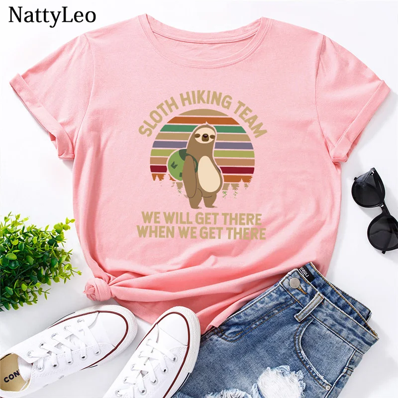 Футболка женская с принтом Ленивец, милая рубашка с круглым вырезом и коротким рукавом, модный топ с графическим принтом, уличная одежда