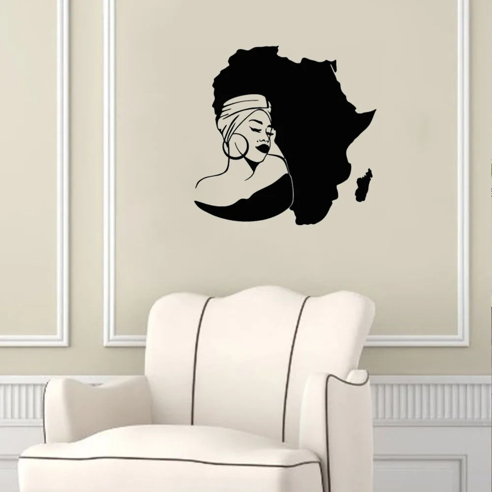 Наклейка на стену с картой африканский континент, наклейки на стену в стиле Африканской девушки для гостиной, спальни, виниловая настенная роспись Revocable DW9712