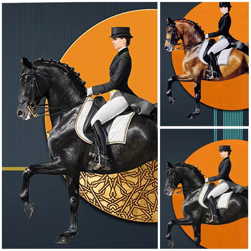 Современный плакат на холсте с изображением оранжево-черно-белых Бегущих Лошадей, гонок, настенные картины для прихожей, большой размер, домашний декор 6-35