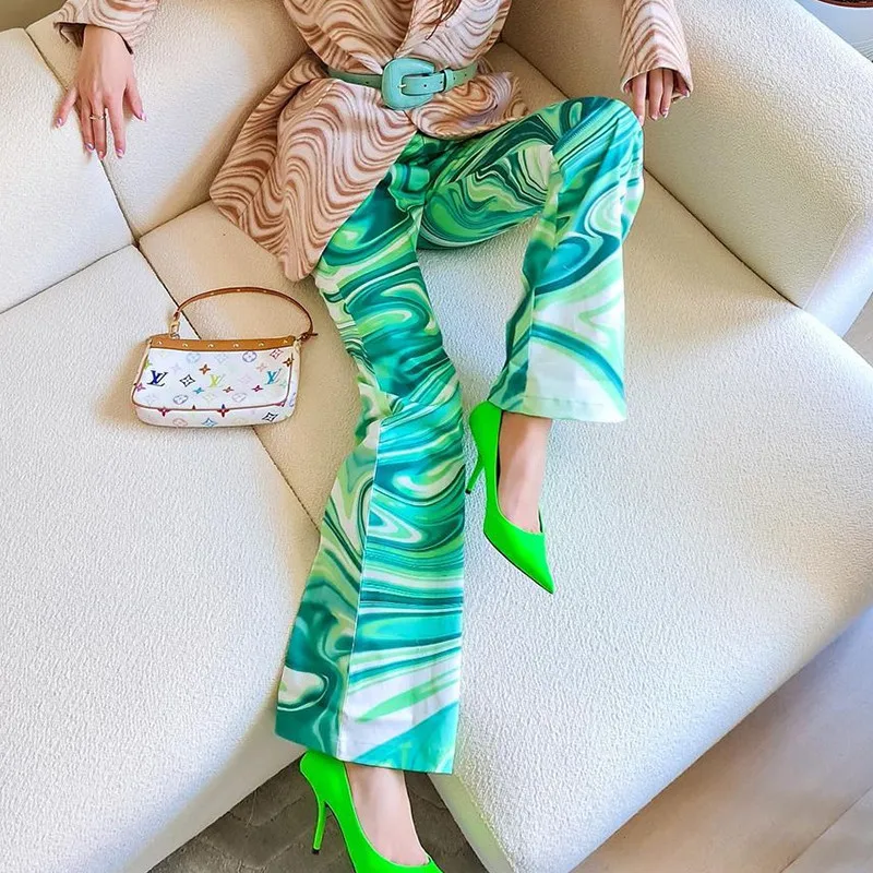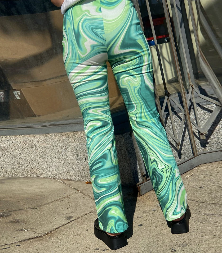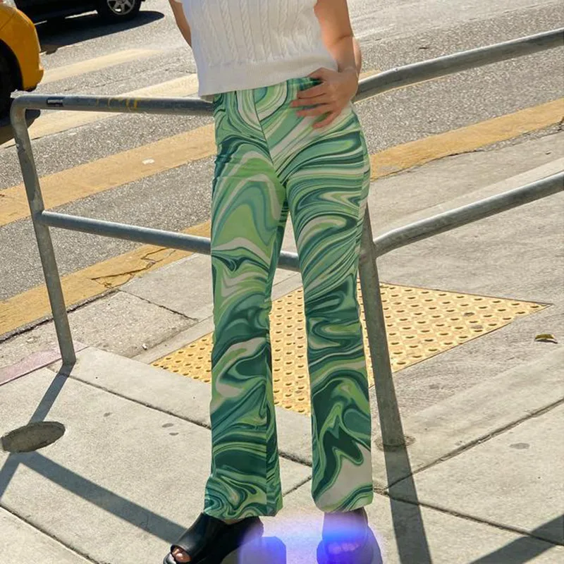 Брюки Zuzanny с принтом тай-дай женские Y2K летние зеленые пикантные брюки с широкими штанинами повседневные 2021 уличная одежда с высокой талией женские брюки