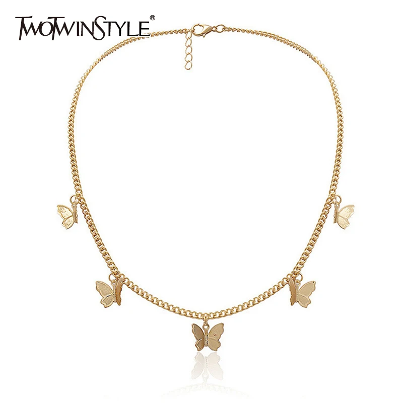 Женское Ожерелье-бабочка TWOTWINSTYLE, Золотистое Ожерелье из металлического сплава, аксессуар для вечеринки, 2021