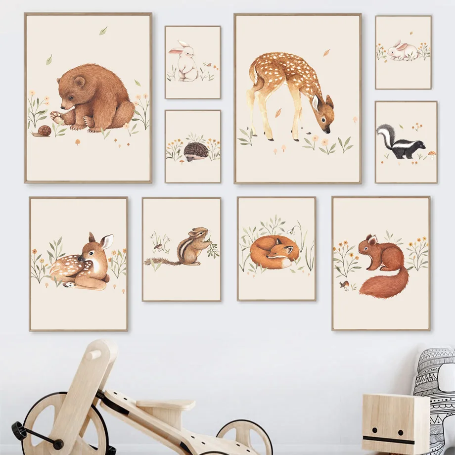 Медведь Олень Кролик Лесной детский абстрактный Бохо настенная Карт...