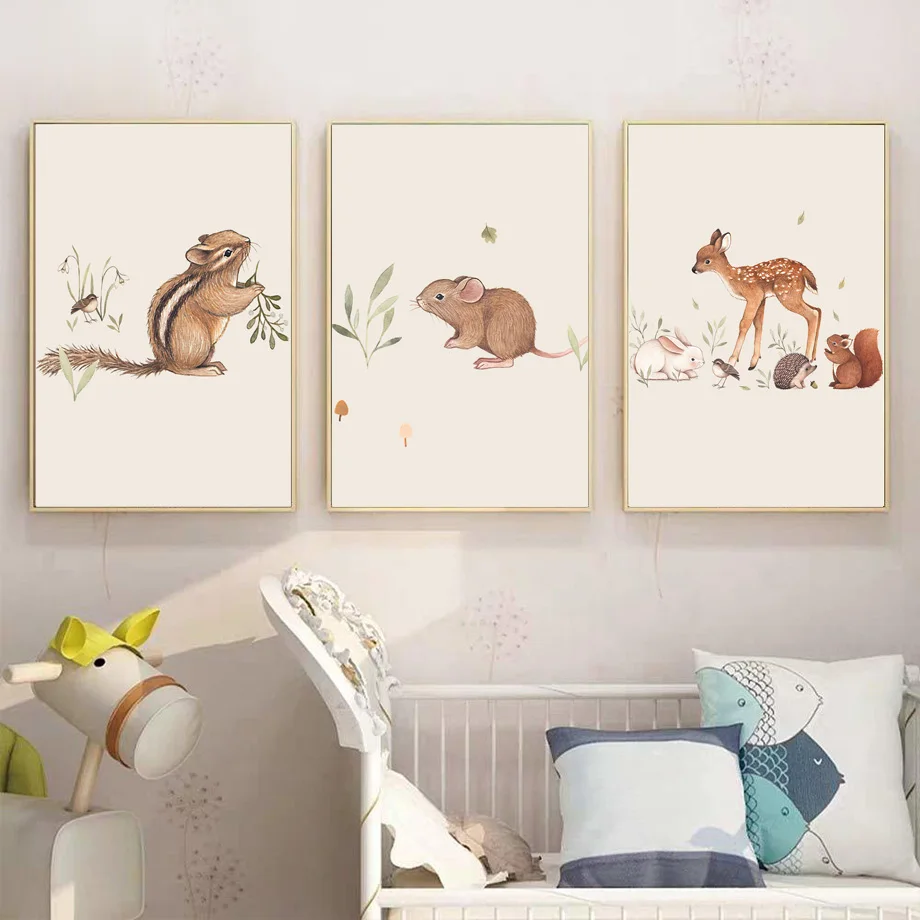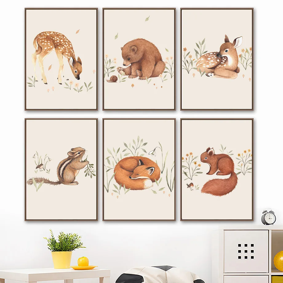 Бохо белка Ленивец лиса олень бабочка медведь слон настенная живопи...