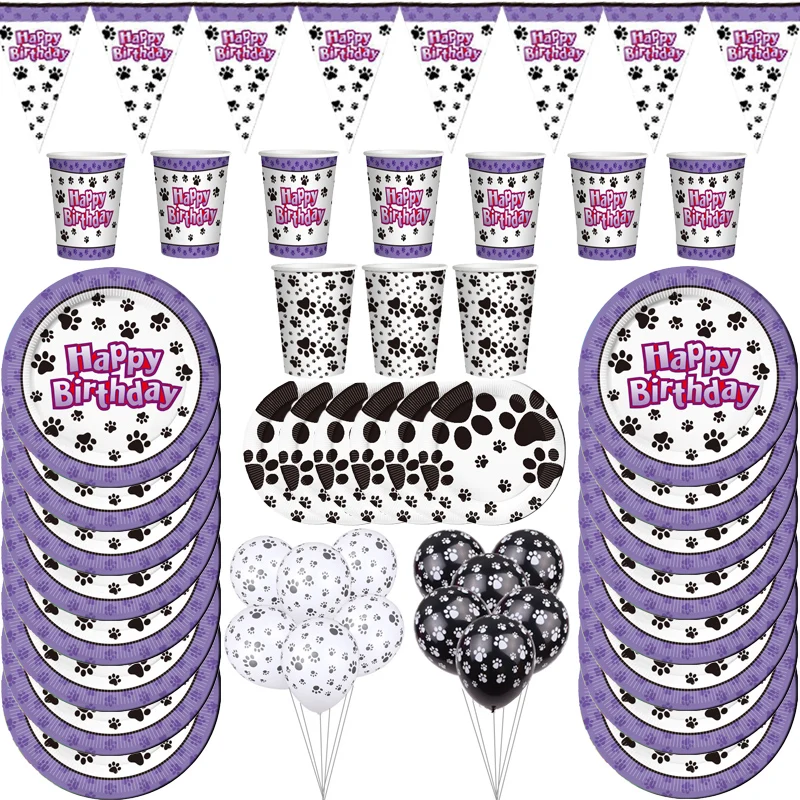 Четыре щенков вечерние украшения посуда собака тема бумажный стаканчик, тарелка салфетки Вымпел скатерть для дня рождения карнавальный костюм поставки