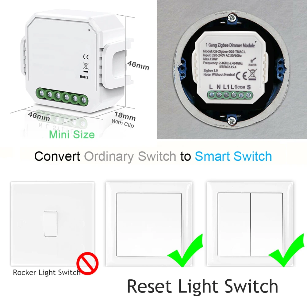 Это умный модуль диммера, который может преобразовать ваш традиционный диммер в интеллектуальный модуль переключателя, вы также можете достичь голосового управления, как только вы подключаетесь к Alexa Google Home Интеллектуальный голосовой помощник, приходите и попробуйте, это не подведет вас.Особенности:Пульт дистанционного управления: вы можете использовать мобильный телефон для дистанционного управления переключателем, даже если вы находитесь далеко от дома.Голосовое управление: Как только у вас есть этот переключатель, вы можете подключить его для Alexa или для Google Home для голосового управления.Управление приложением Tuya: вы можете подключить этот модуль с приложением Tuya, затем вы можете управлять в любое время и в любом месте с помощью приложения, наслаждайтесь удобством интеллектуального образа жизни.С помощью этого модуля переключателя вы можете превратить ваш традиционный переключатель в интеллектуальный модуль переключателя.Компактный и не занимает места. Вы можете установить его везде, где хотите, или он маленький по размеру, так что вы можете носить его с собой в любом месте, где вы хотите его использовать.Характеристики:Материал: АБС-пластикТип: 1 банда, 2 банды (опционально)Нейтральный: безЦвет: белыйВход: 220 ~ 240 В переменного тока, 50/60 ГцМакс.:1 комплект: 150 Вт2 комплекта: 2*100 ВтWi-Fi: 2,4 ГГц ~ 2,484 ГГц IEEE802.15.4ZigBee: 3,0Размер изделия: 50*46,0*22,5 мм/2,0*1,8 * 0.9inПосылка Размер: 60*50*30 мм/2,4*2,0 * 1.2inПосылка Вес: 46,0 г/1,6 унцииПримечание:Этот модуль переключателя должен подключаться к концентратору ZigBee Gate-way для использования.Этот модуль можно использовать с сбросом светильник ведьмы, но не может использовать с переключателем рокер светильник, пожалуйста, проверьте перед заказом.Упаковочный лист:1 * Модуль диммера ZigBee (опционально)