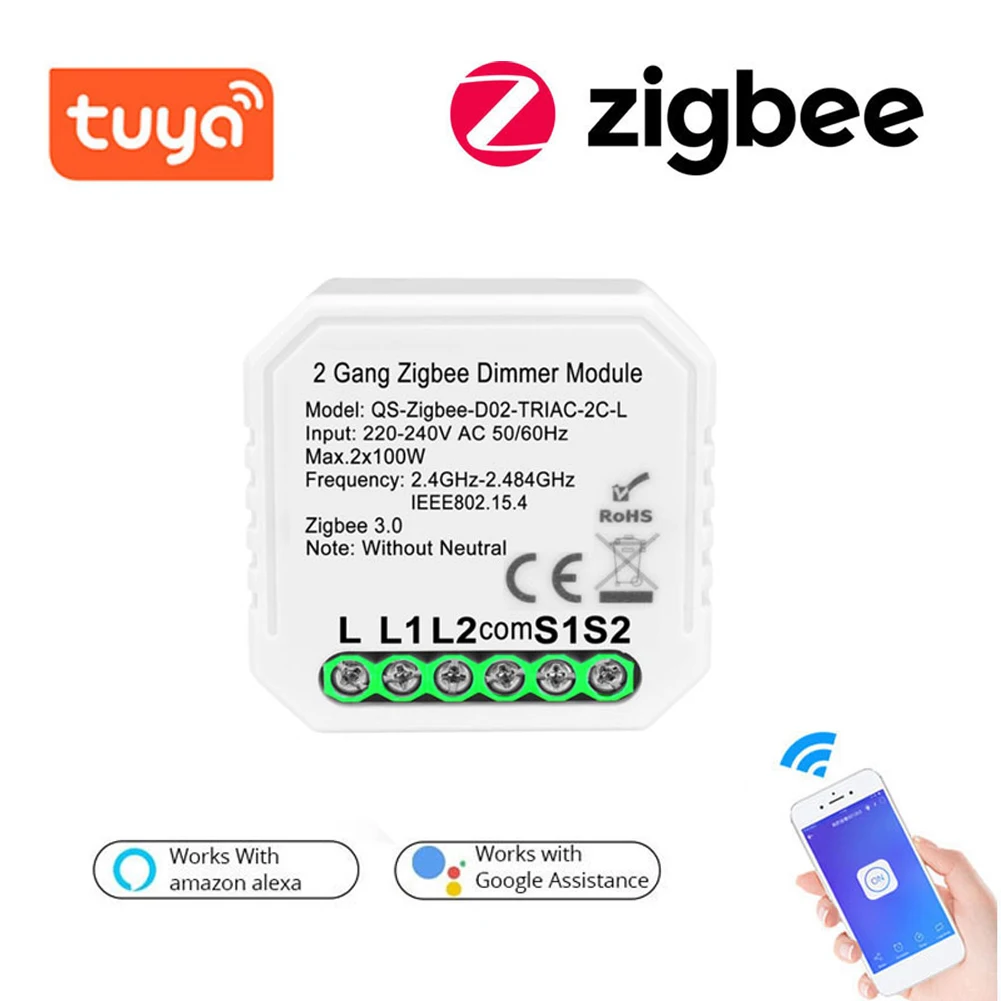 Модуль регулировки яркости Tuya ZigBee, 1 клавиша2 клавиши, модуль переключения света, голосовое управление, совместим с Alexa Google Home