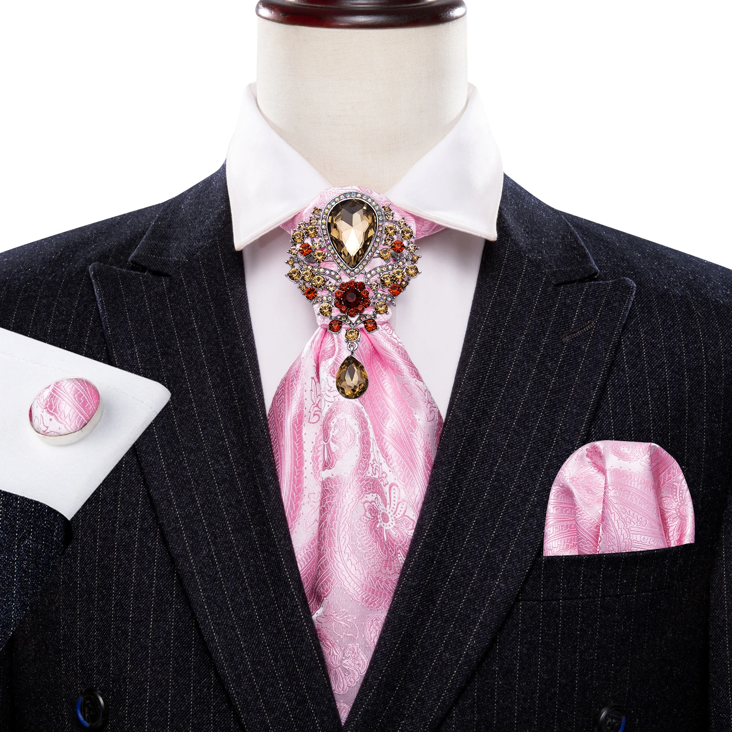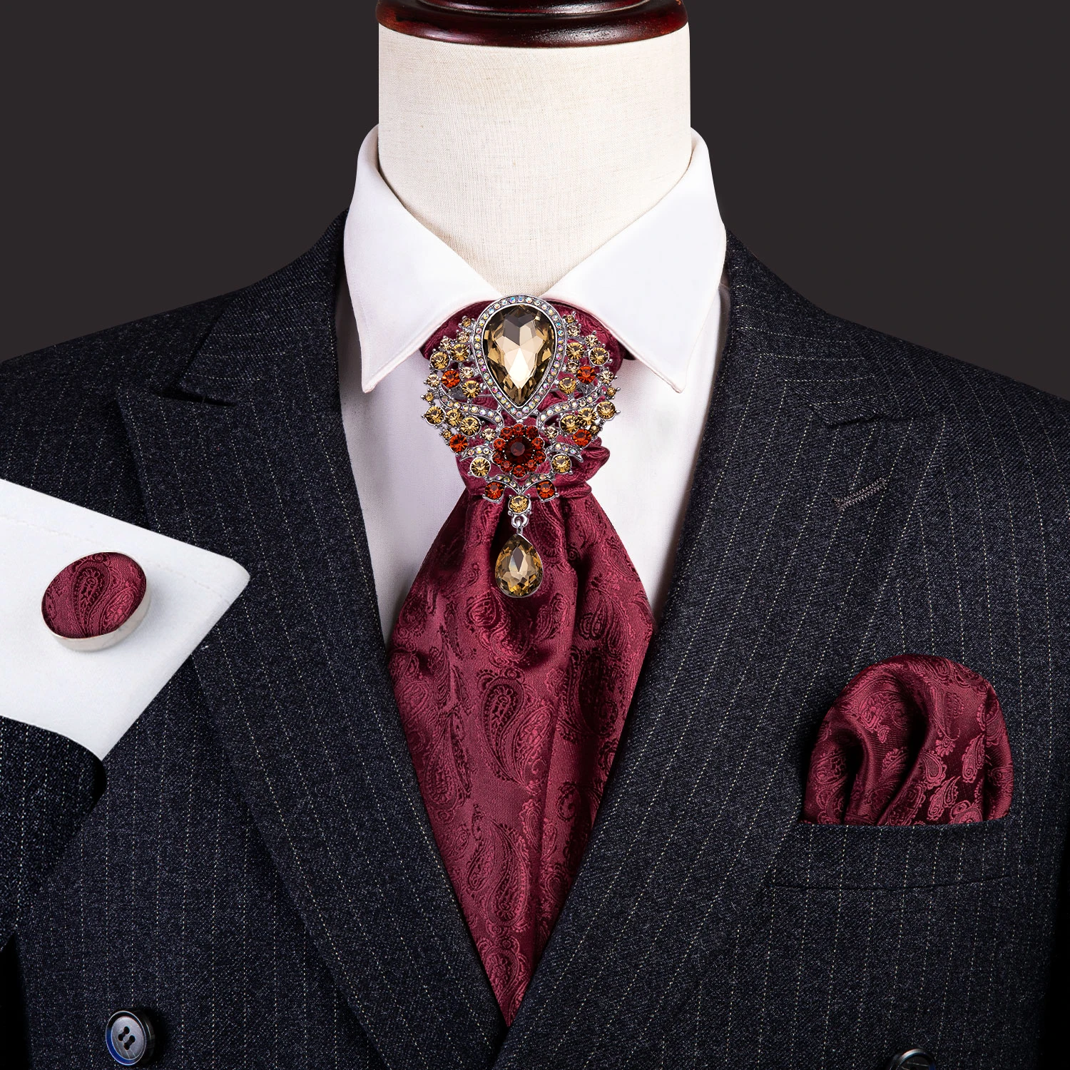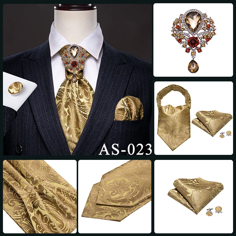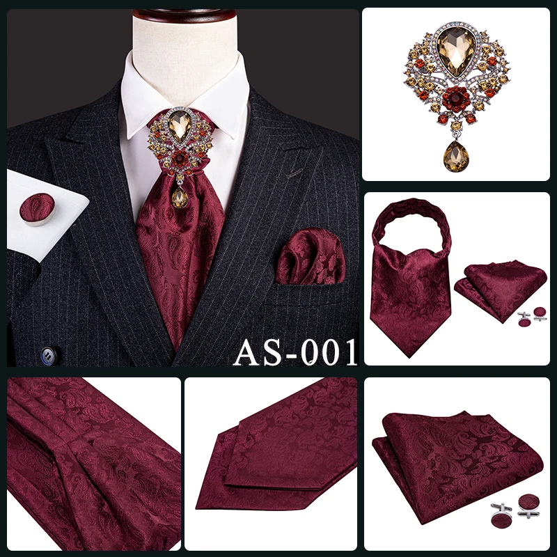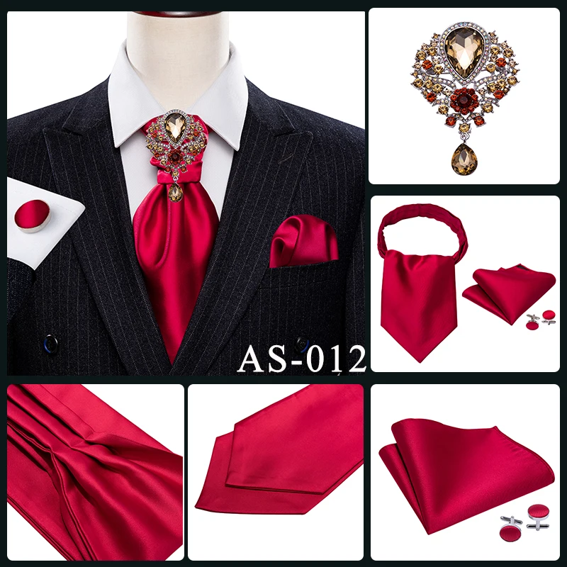 PackingMen Ascot Tie + Handkerchief + Cufflinks+Brooch
