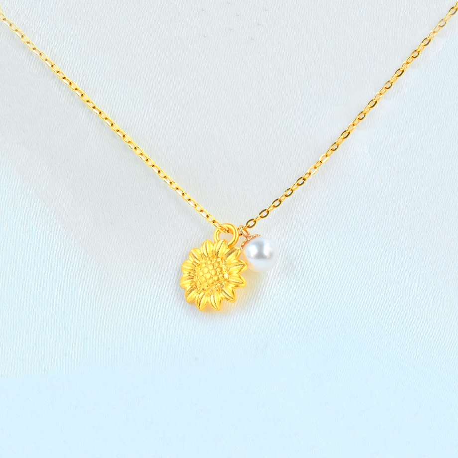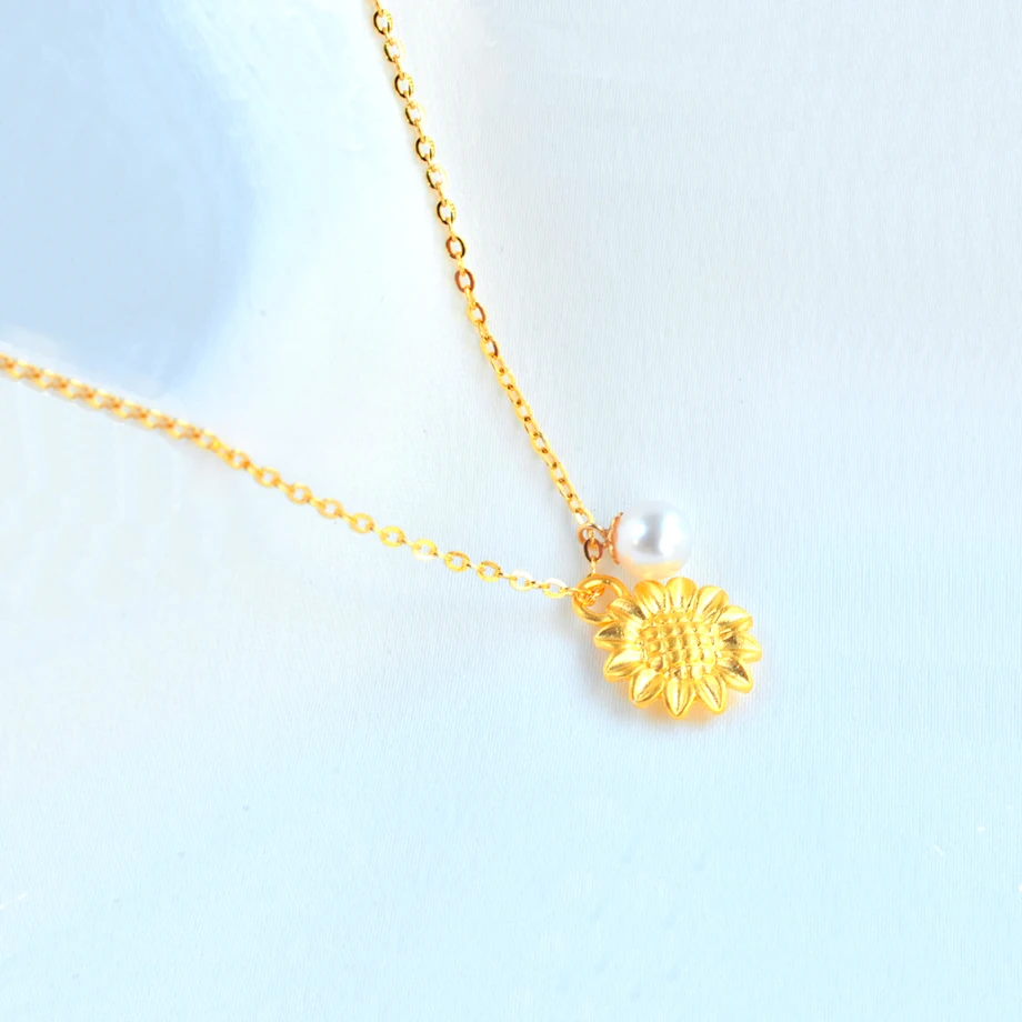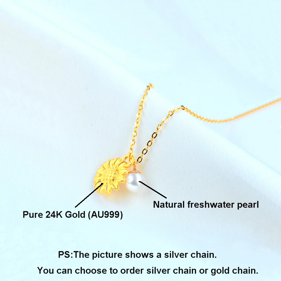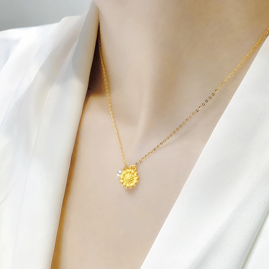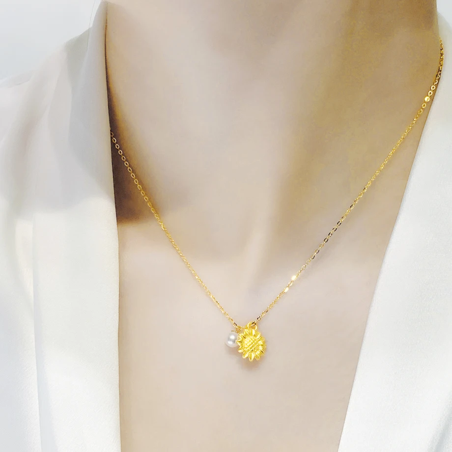 Подвеска из 999 золота прекрасное ювелирное ожерелье пробы с подсолнухом и натуральным жемчугом, 18 карат, AU750, свадебный подарок для женщин, XF800, D9