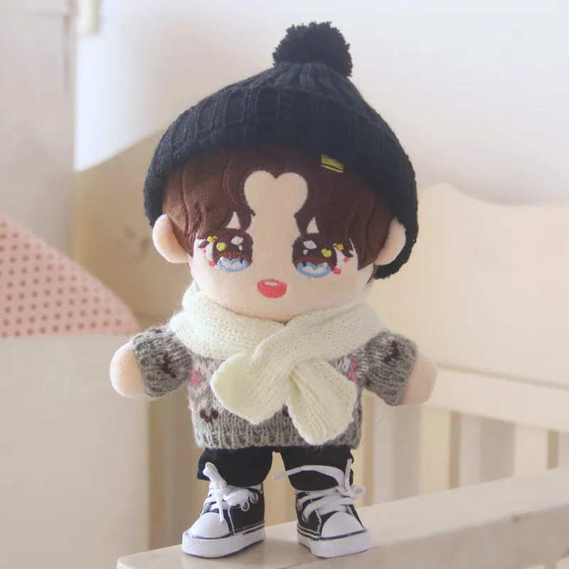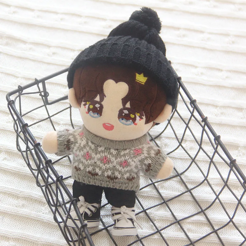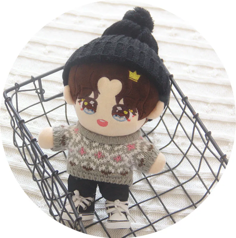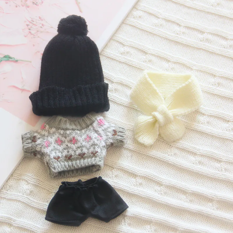 Одежда для кукол, 20 см, милая, сяожань, Yibo, серый свитер, с надписью Love Beans, шерстяная одежда, черные брюки, шляпа, рюкзак