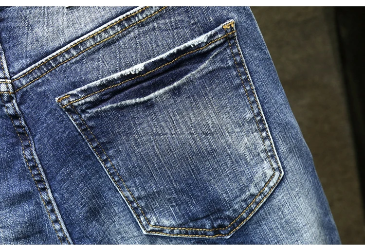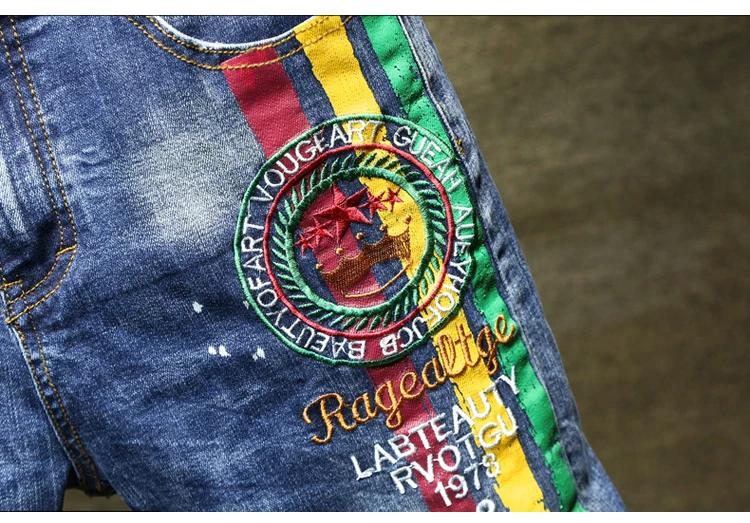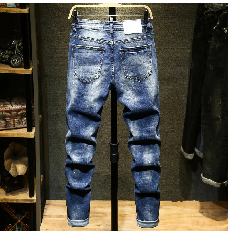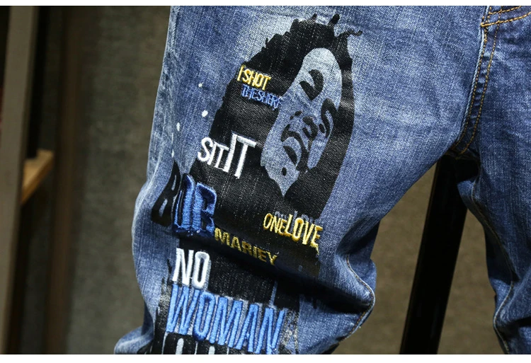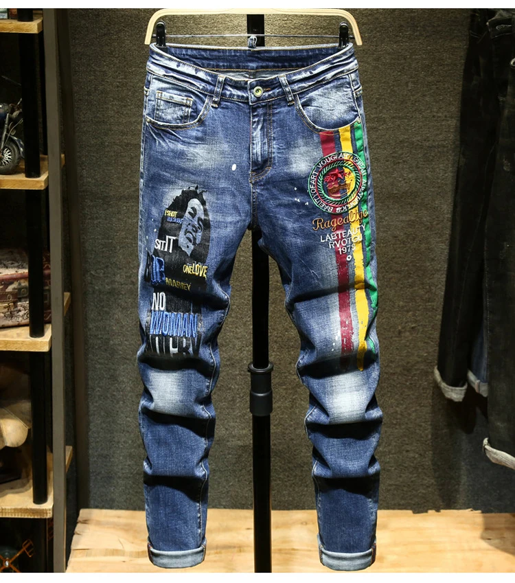 Мужские джинсы из эластичного денима с вышивкой и надписью, Модные Узкие прямые брюки в уличном стиле