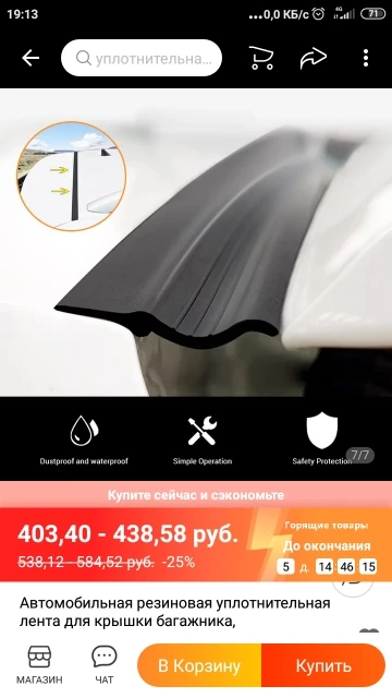 ставлю оценку нормально опираясь на результат. но ожидал большего. если клеить дальше на крышу, то топорщится на двери, а если ближе к двери, то в верхнем положении крышки багажника заминается и есть вариант, что быстро отклеится.