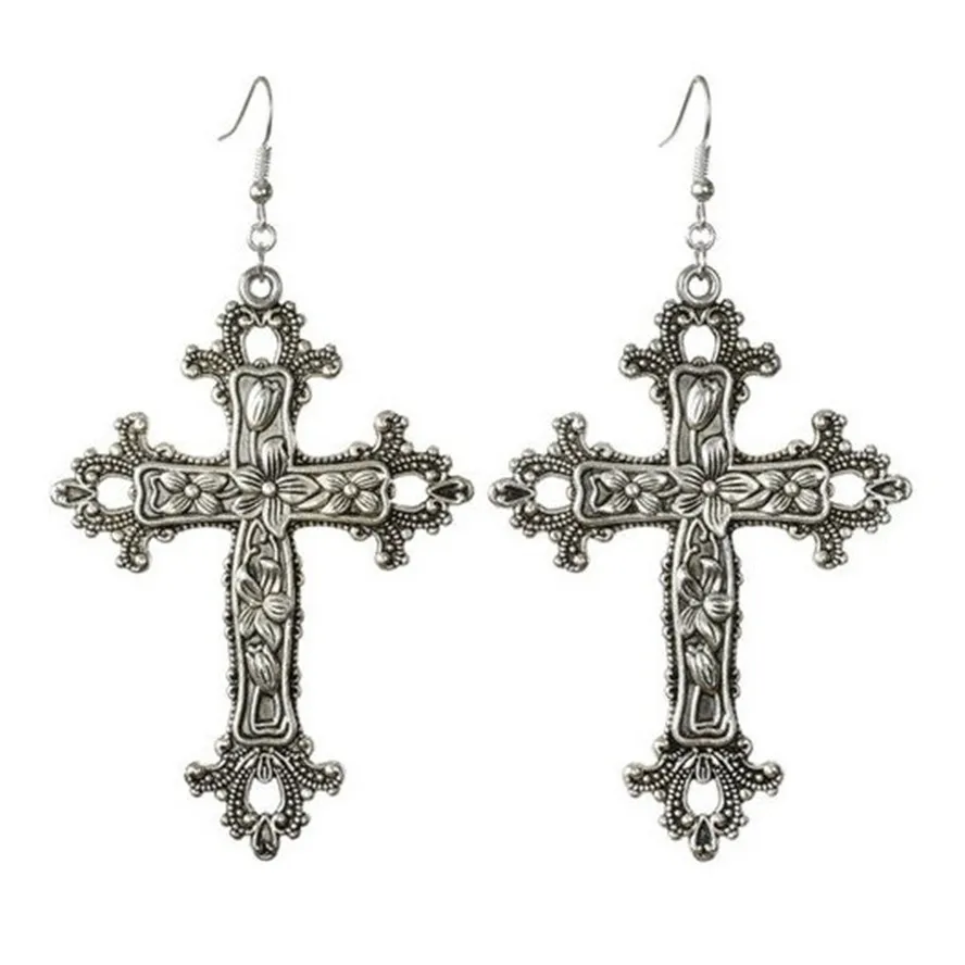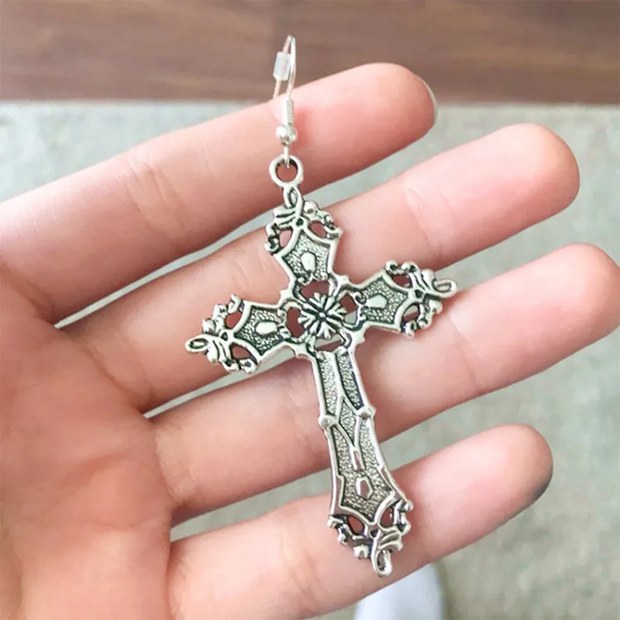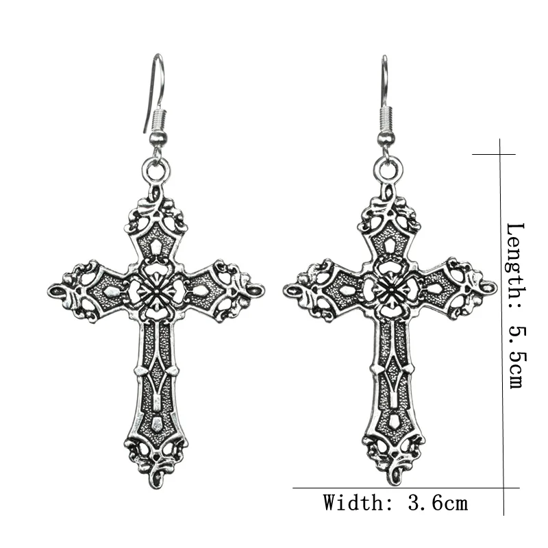 Крест Христос Барокко Подвеска Серьги винтажные богемные 1980 Мадонна Готический большой АНХ крест серьги