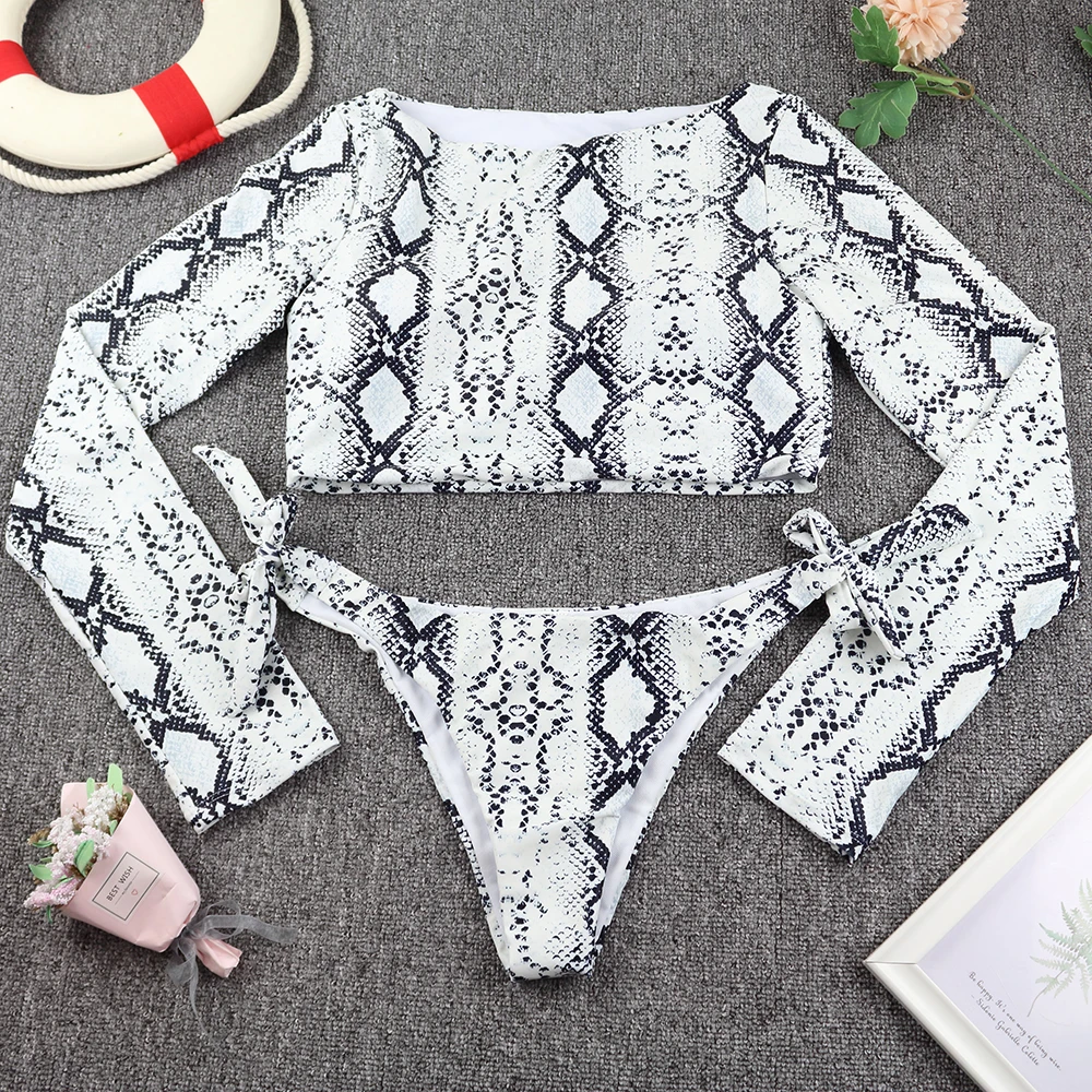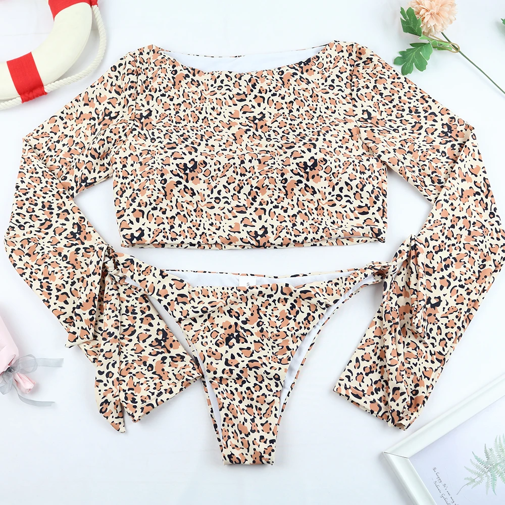 Комплект бикини с длинными рукавами, купальник для серфинга, женский купальник с леопардовым принтом, пуш-ап, купальный костюм из двух предметов, бандо, бикини 2022
